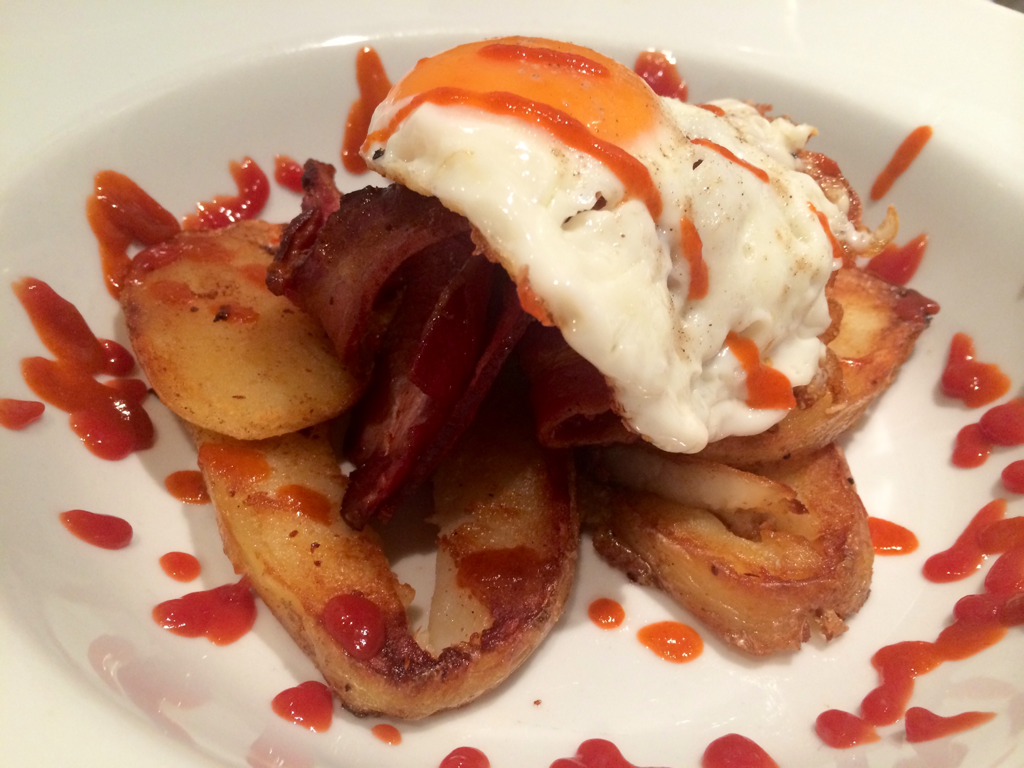 With a beautiful burford buff egg crisped on one side.. Too much ketchup and siracha.. I wasn’t looking for a good looking plate here.. This was eating time!