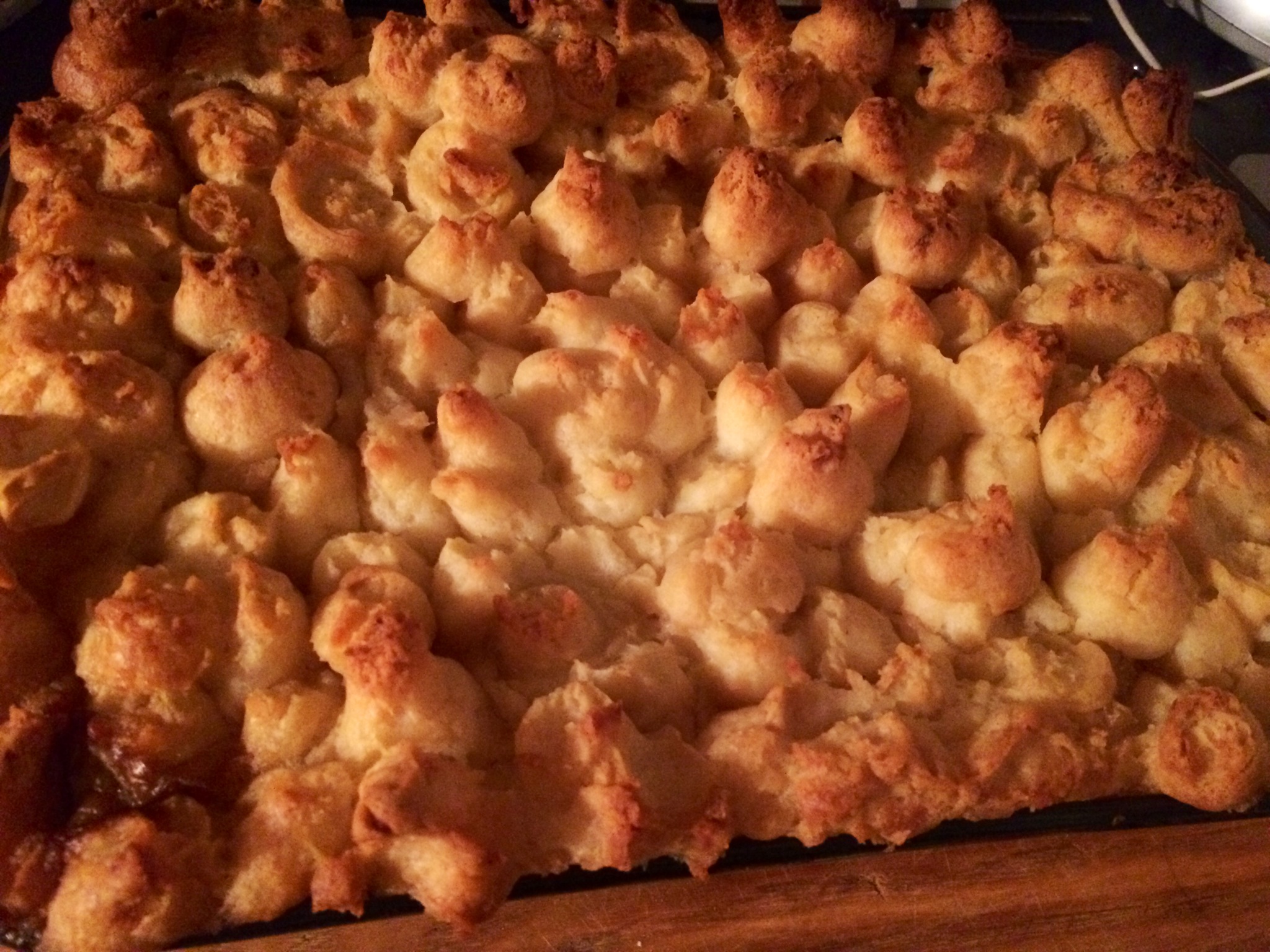 Mashed into a mixture of butter, double cream , a burford buff egg and white pepper and sea salt.. This should make the top go really light and crispy..
