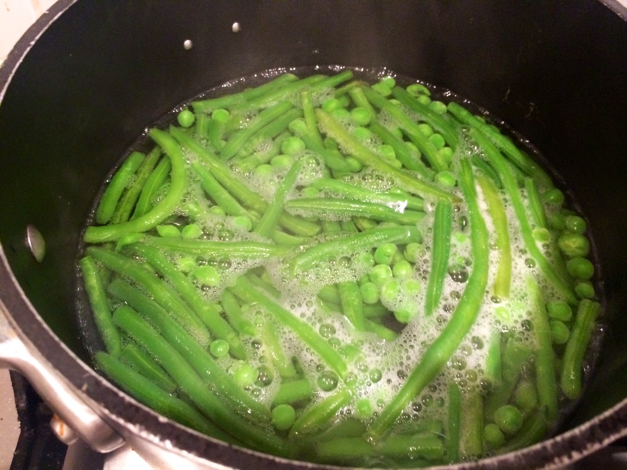 Simple extra fine green beans and peas to go with.. They are a freezer delight!