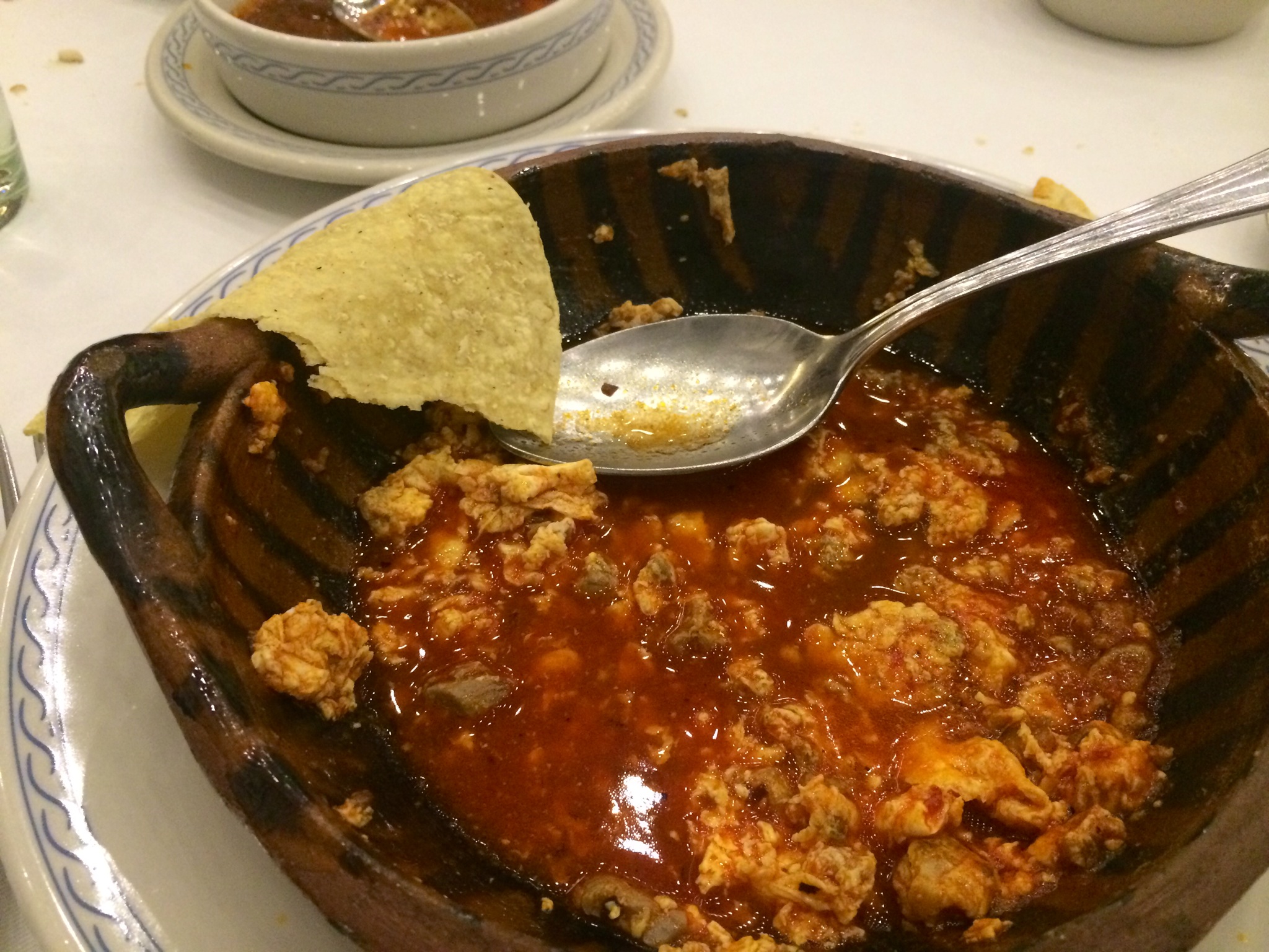 The dish decided upon is a beef with scrambled eggs in a red watery sauce thing .. served with corn tortillas.. I heard people decree that “they make them fresh here font you know”.. Bleeding right they should!! Sheesh already!