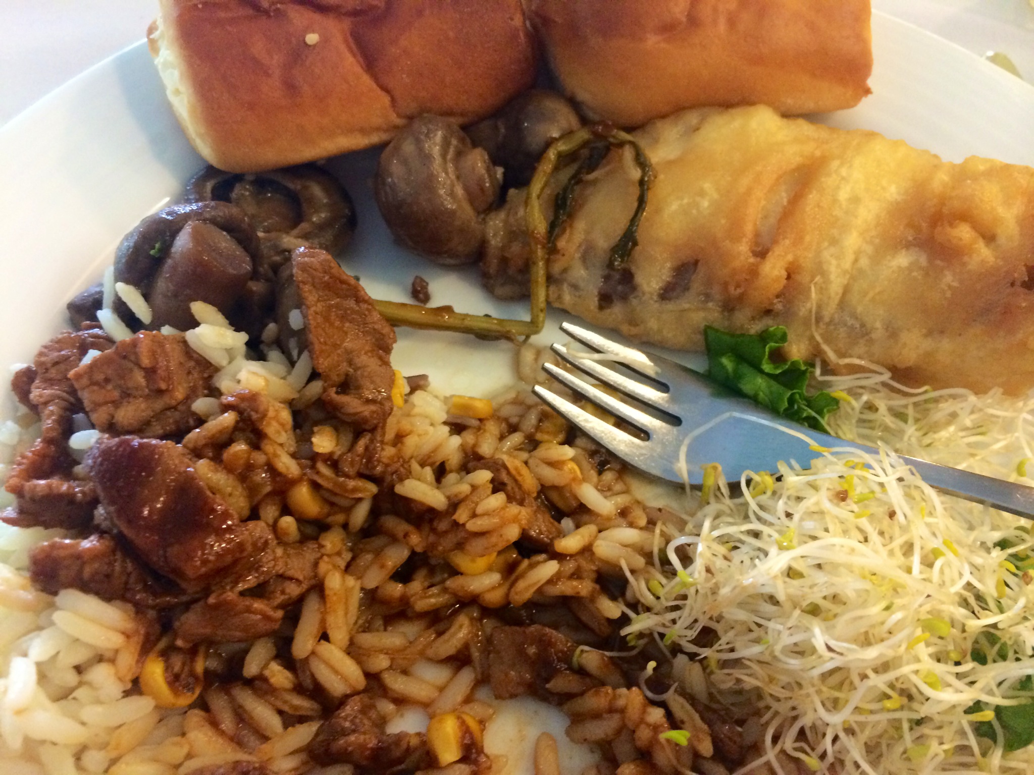 lunch at work was better.. a spicy beef dish with rice.. A piece of fried fish .. Yup fish.. And alfalfa.. I really have re-found my liking of it since being here..