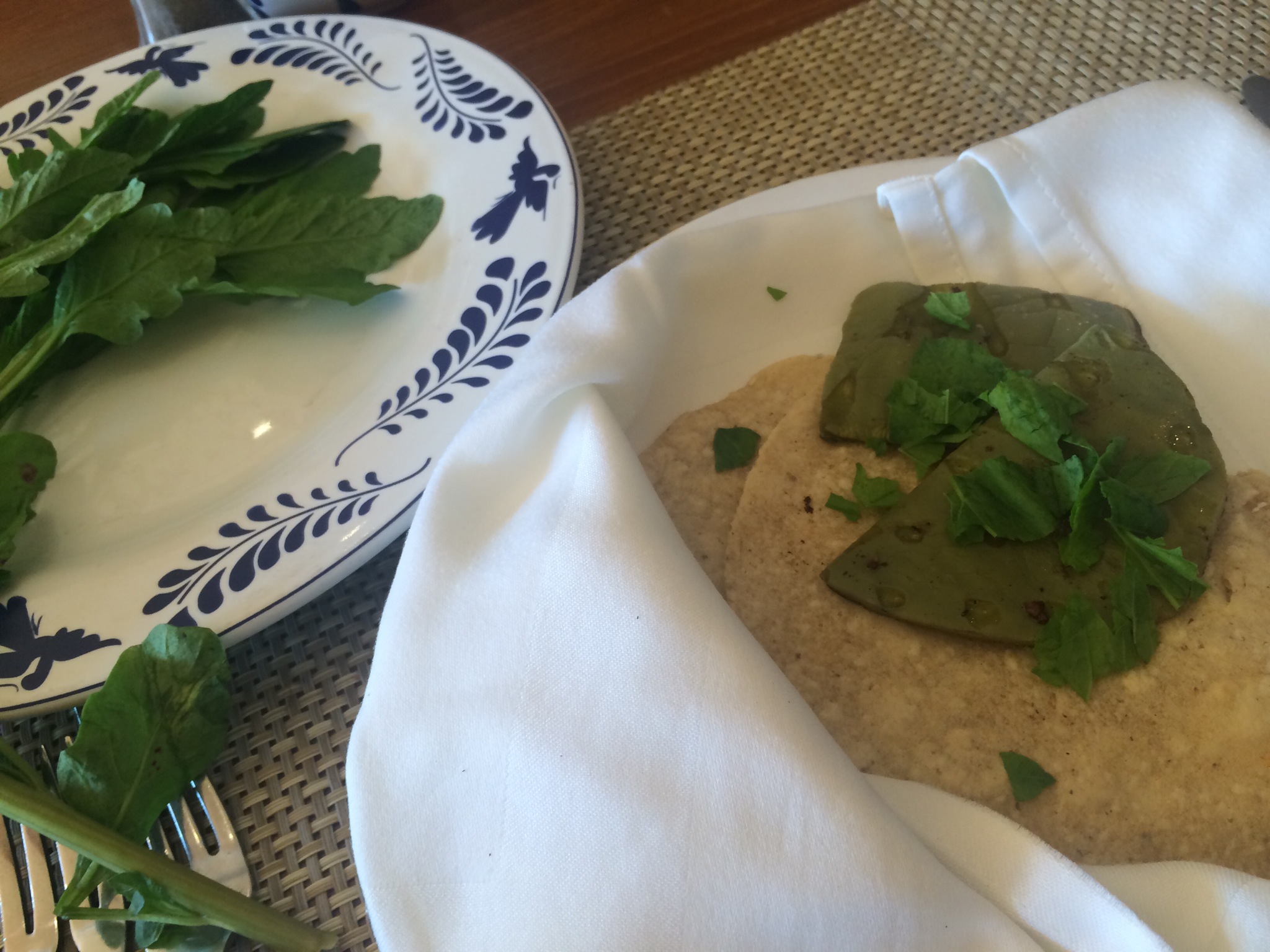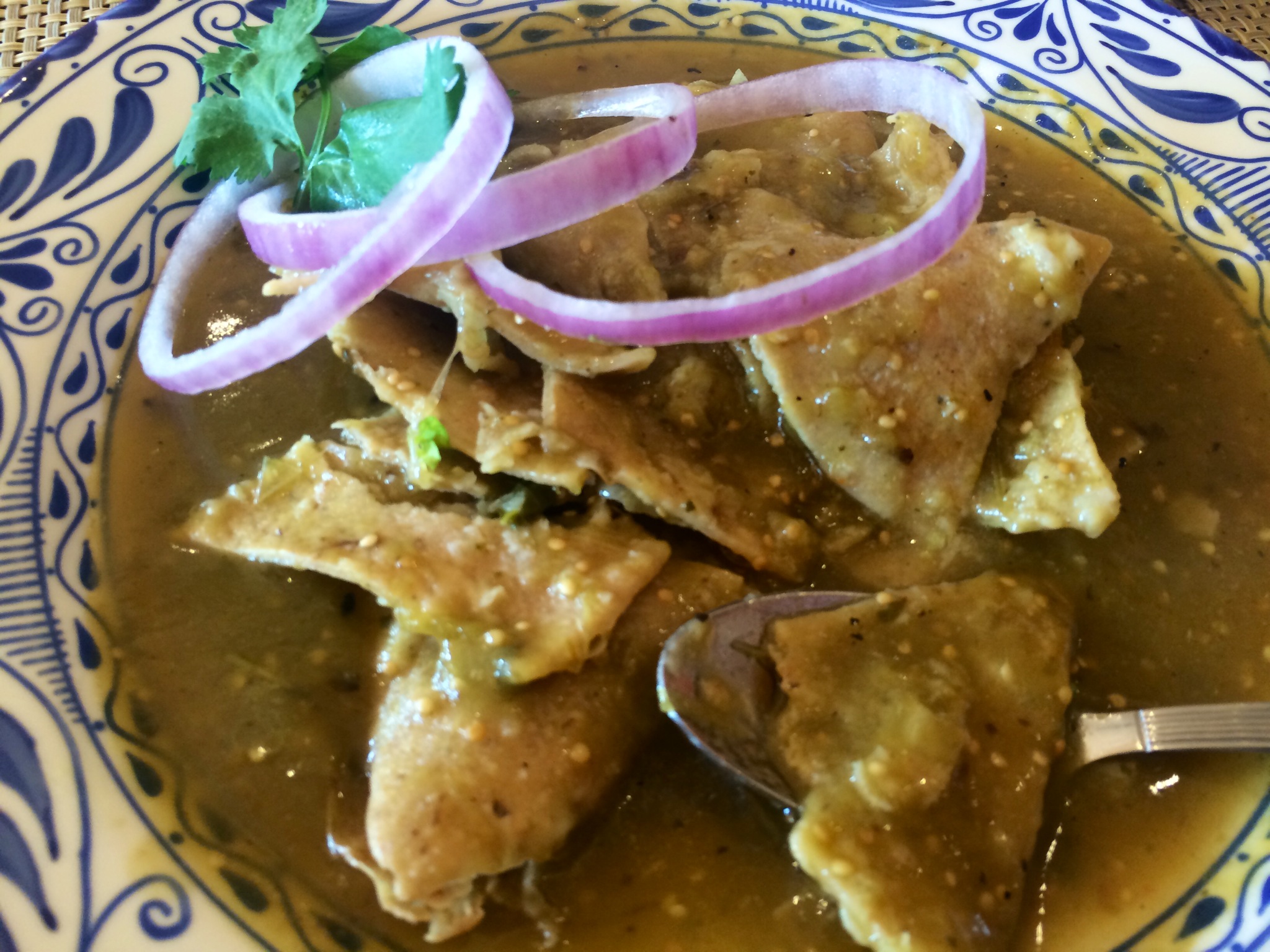 Check this out.. Made with tomatillo , garlic, onion, chilli and a great herb called epazote .. With fresh corn tortillas..