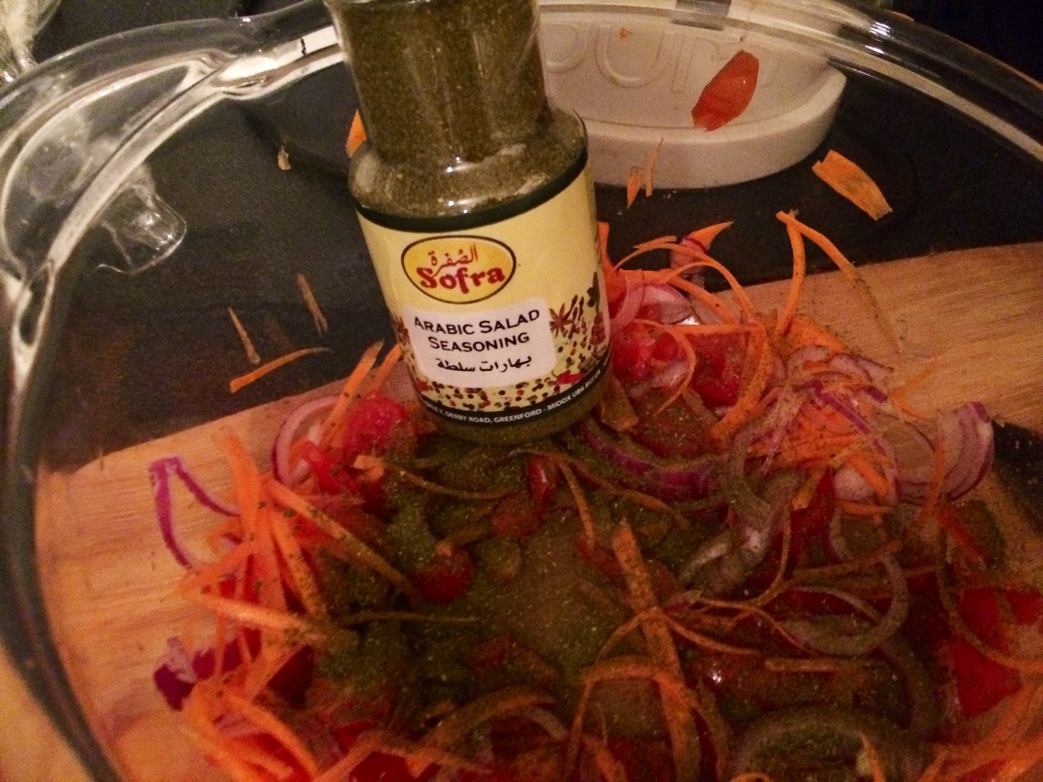 Just in time to make salad of borrowed lettuce.. Carrots, onion and tomatoes.. Squeezed into the bin to lose the water and pips..