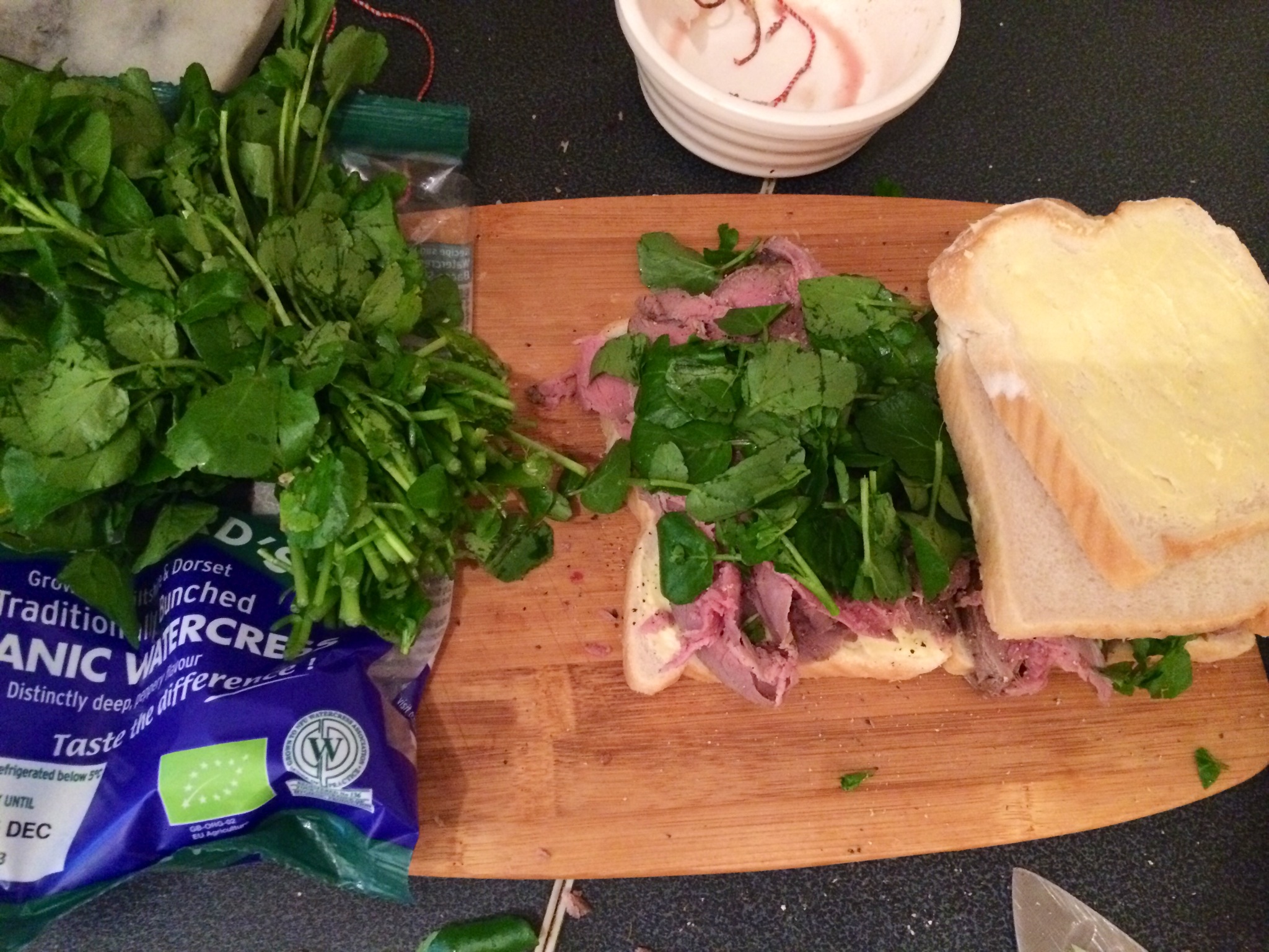 They were left over from this cracking sandwich of roast beef, horseradish and john hurds watercress..
