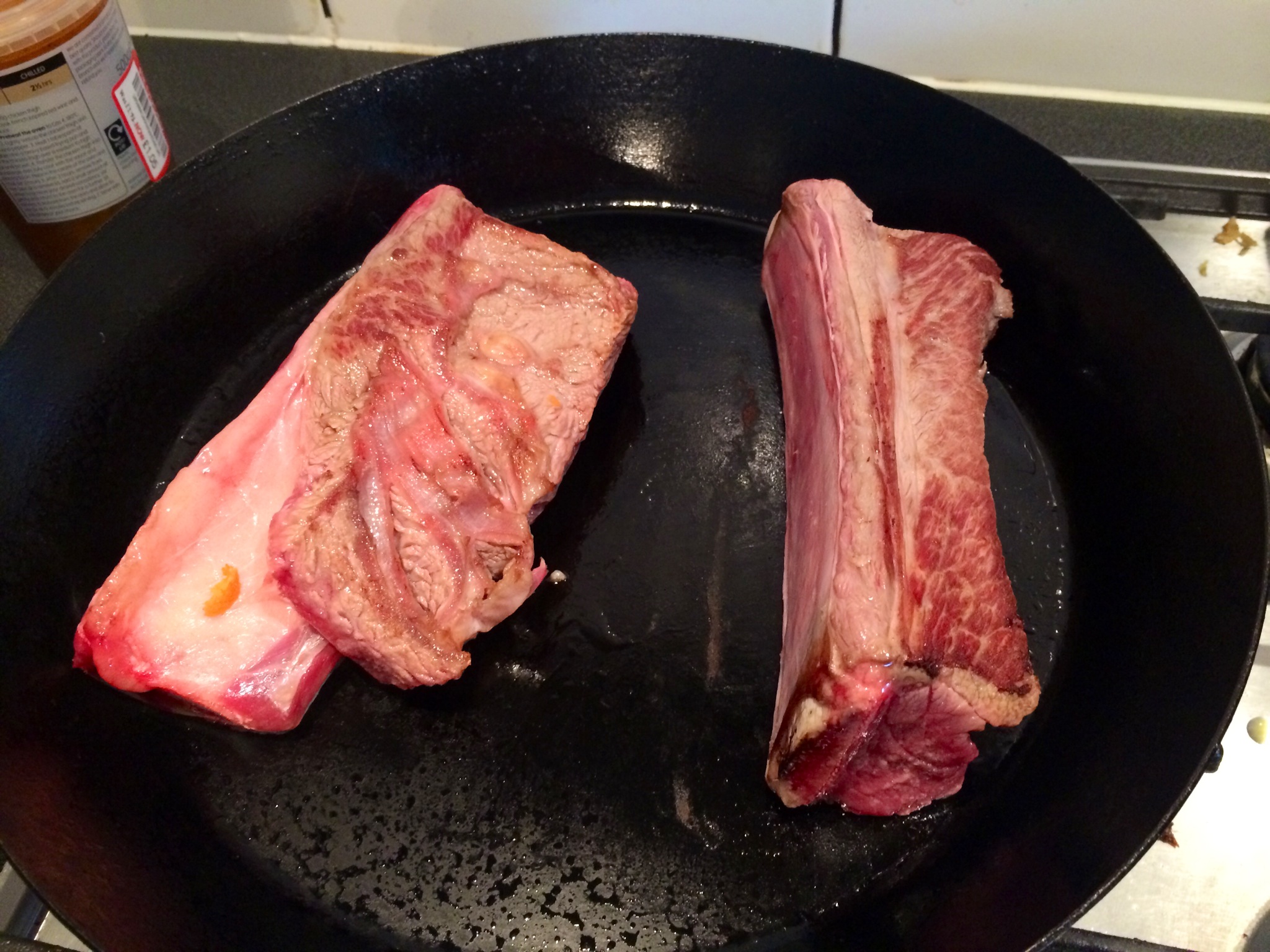 Two short ribs.. Browned on one side as my pal Rory Kelly advises..