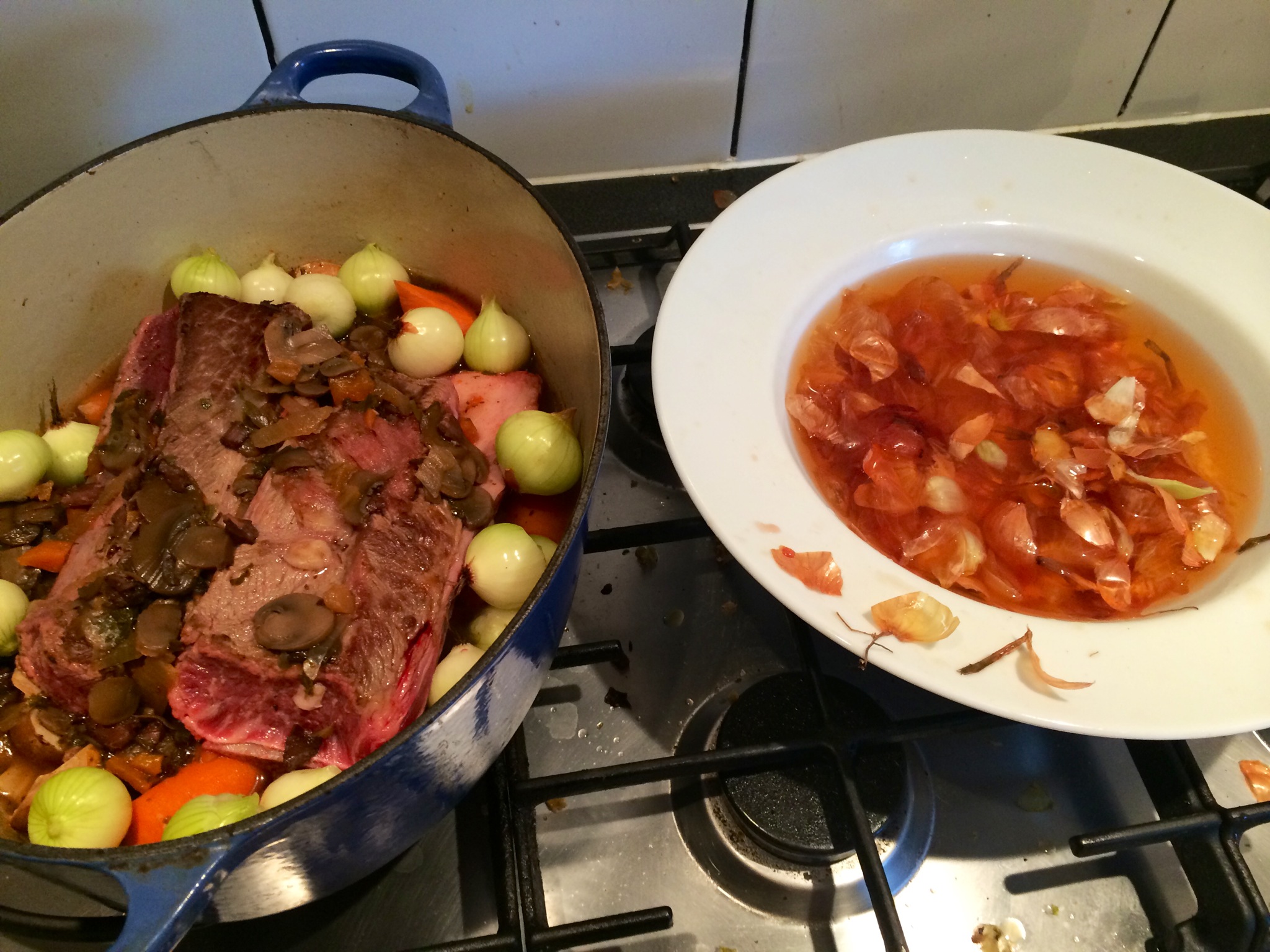 Along with 14 (I counted them)., small onions.. A bugger to peel so soaking in hot water for a while helps the process..