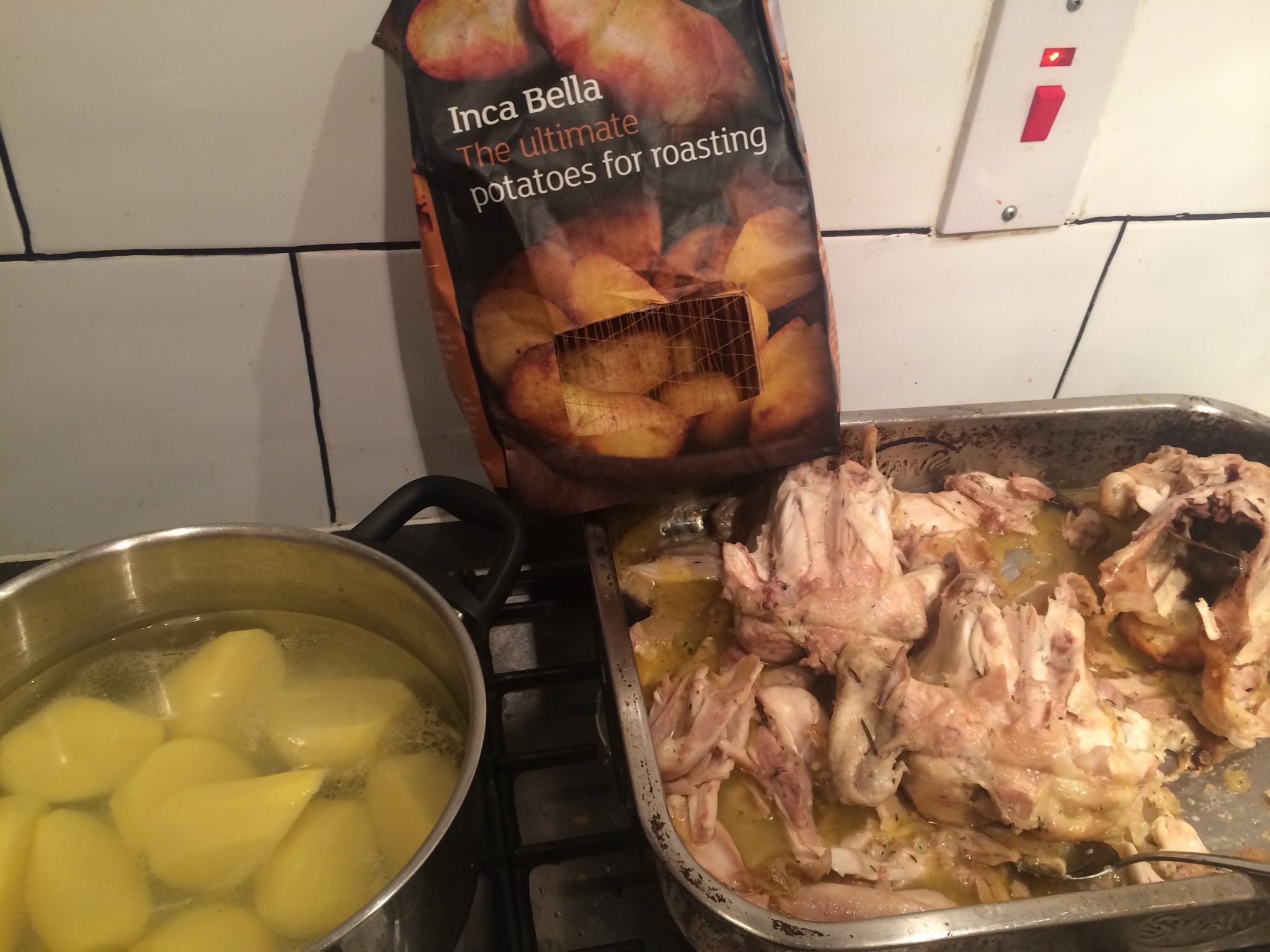 The hounds got the bones to play with while the inca bella spuds that were par boiled ..