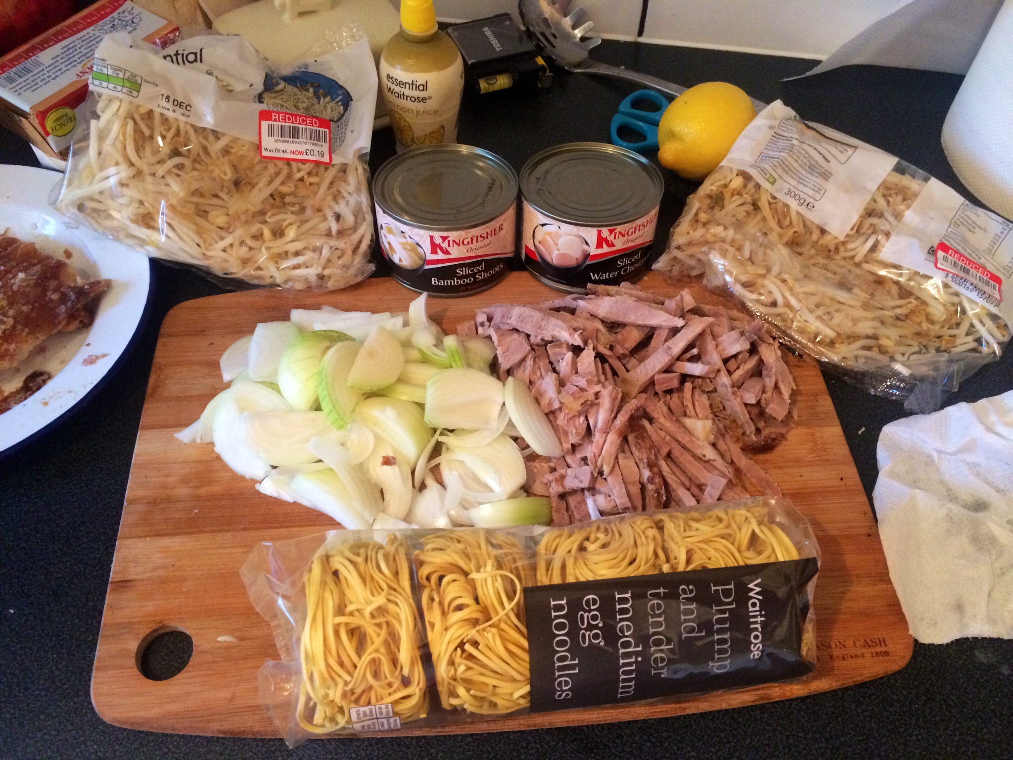 Then canned bamboo shoots, canned water chestnuts .. Red ticket bean sprouts ( 19 pence per pack! )..