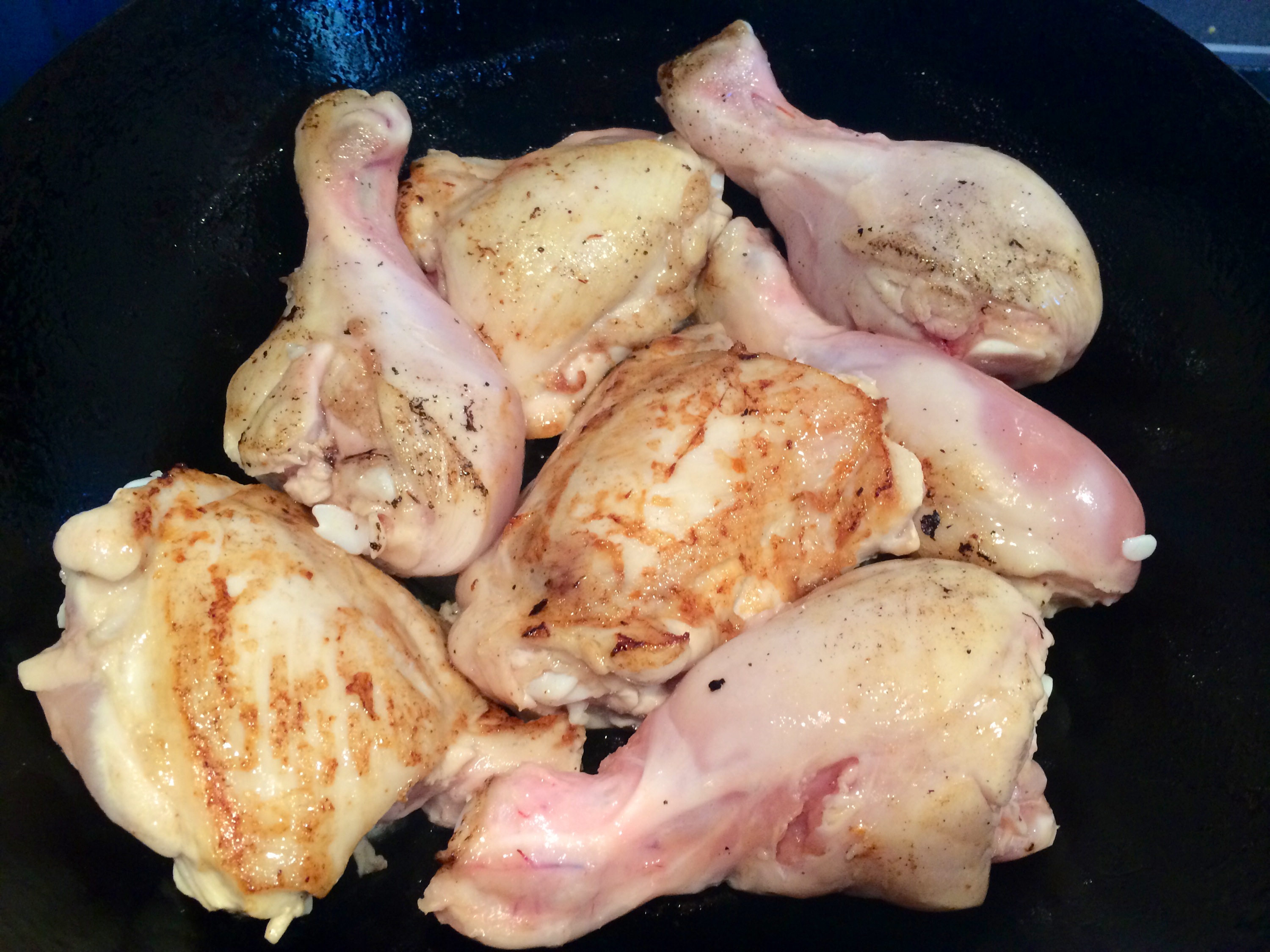 First the chicken skinned and browned off ..