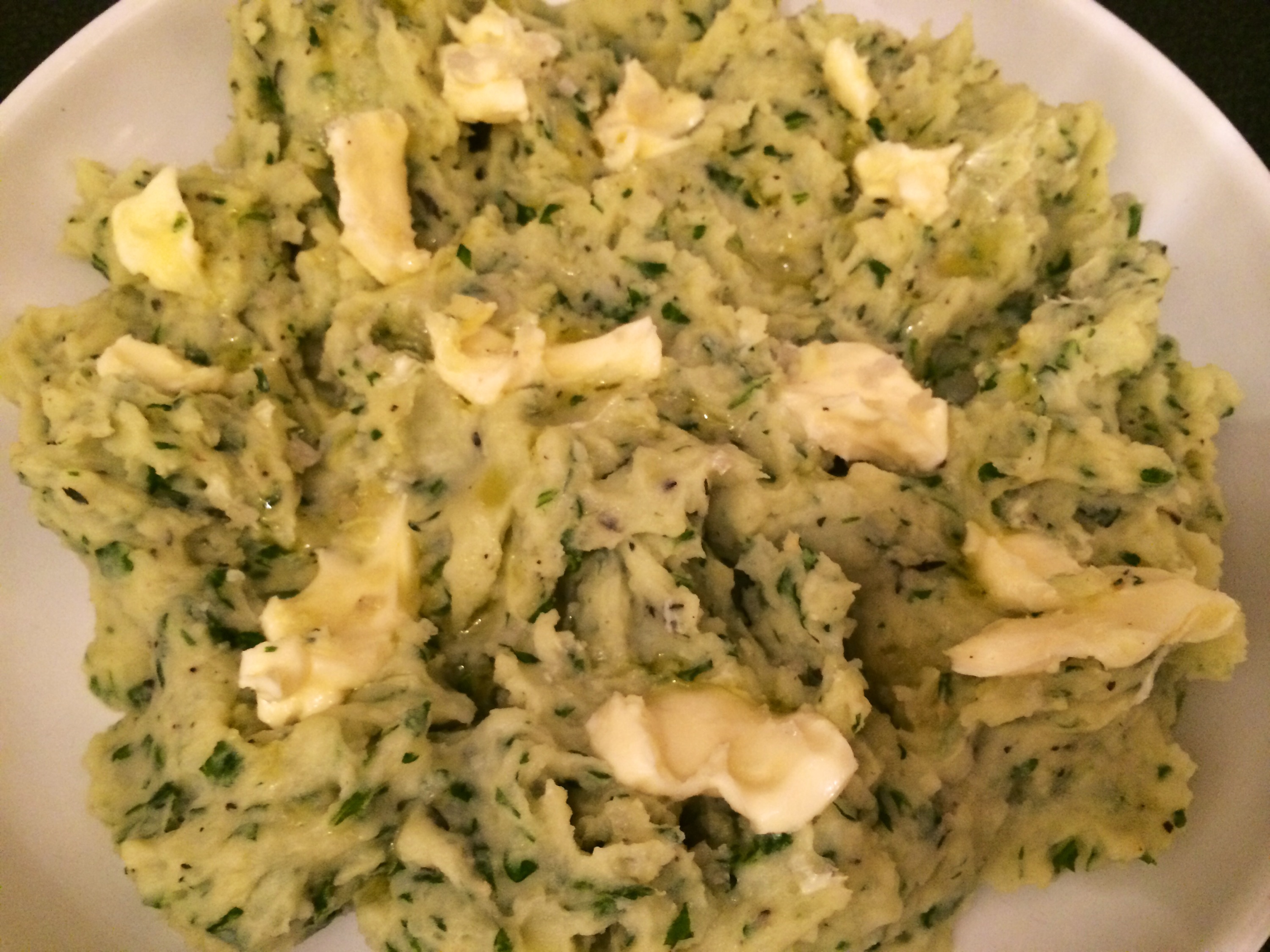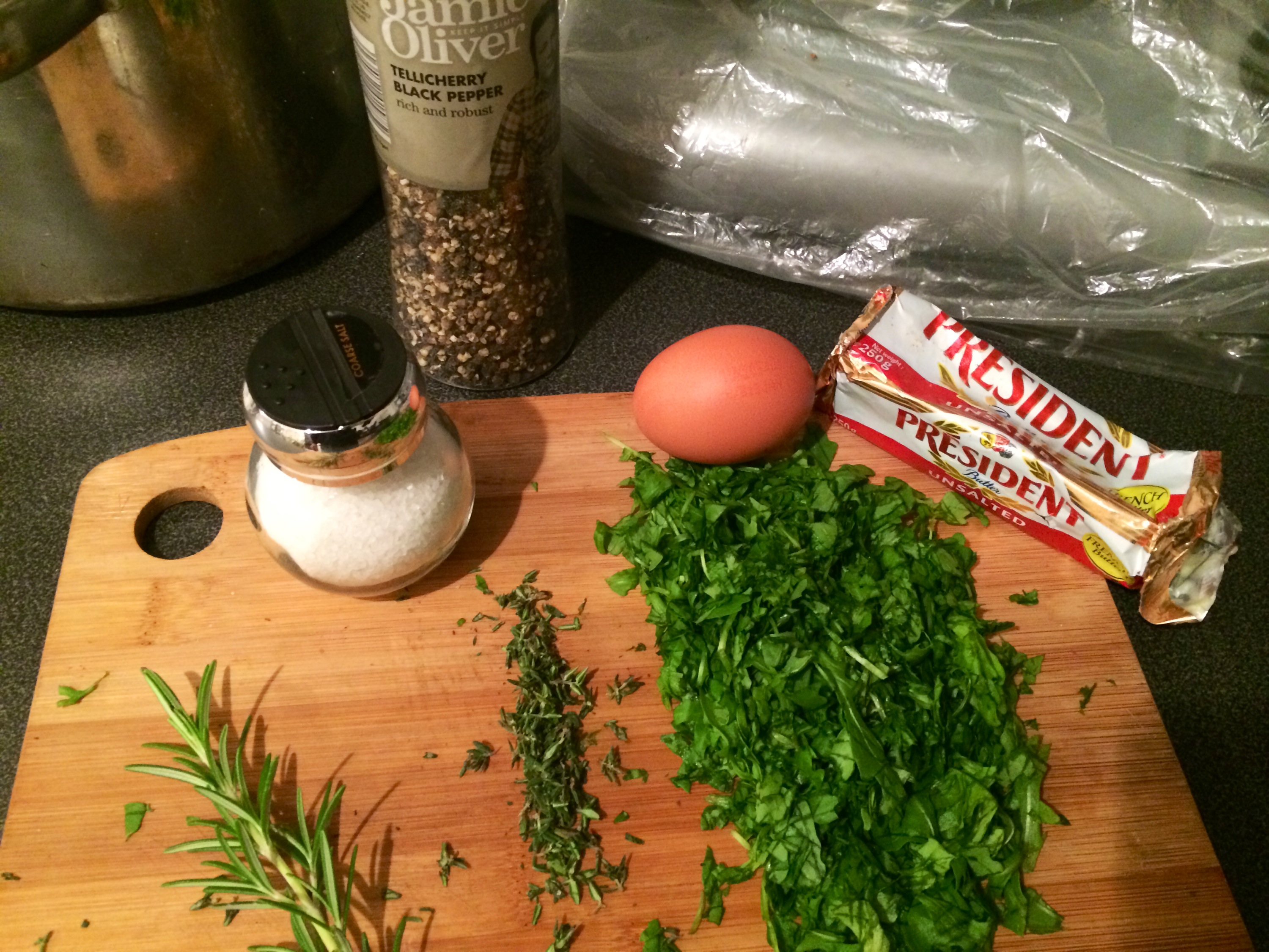 For buttery herby mash. Rocket, rosemary and thyme chopped up ..