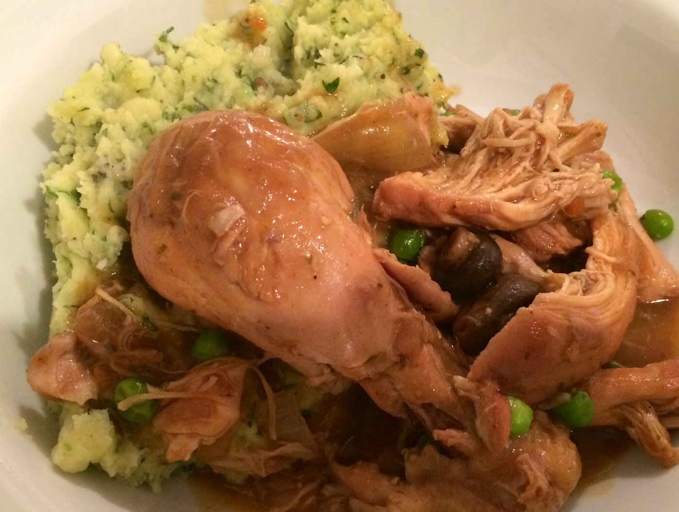 And chicken chasseur is just the ticket.. Chicken thighs, onions, tarragon, white wine and herbs and stuff..