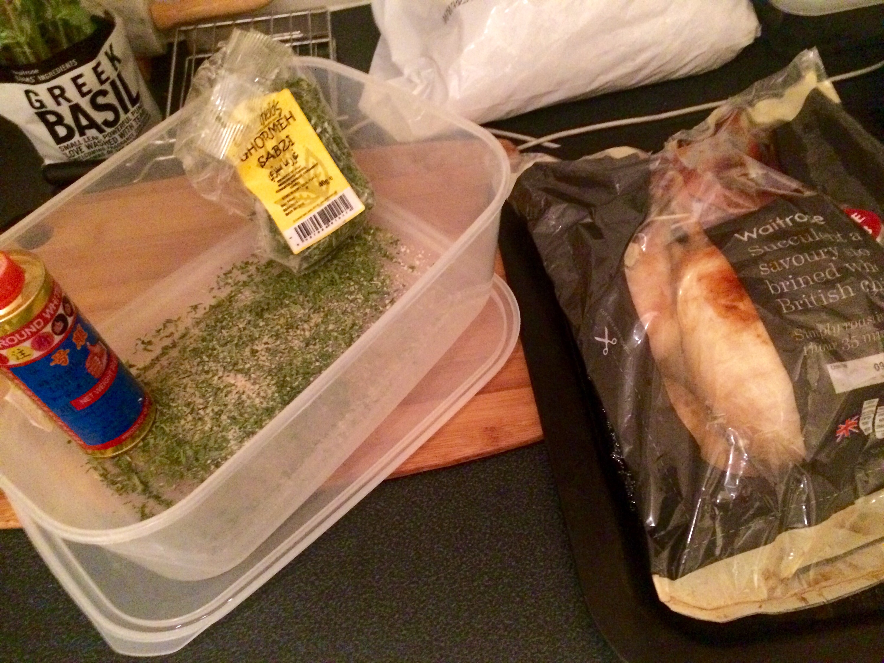 In order to flavour it up .. Ghormet sabzi lebanese herbs.. And Himalayan pink salt and thumbs up thai white pepper..