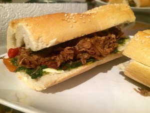 So this pulled pork is piled into baguette that has had most of its doughy middle ripped out.. Less bread.. More meat..