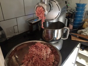It needs mincing the coarseness is up to you.. I like them quite fine at the moment.. So once gone through the middle of the three mincer attachments and the addition of rusk and seasonings.. It’s passed through the smallest holed attachment I have..