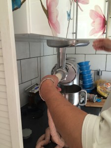 It’s onto the stuffing.. I have various bits of equipment for this yet the tool of choice this time around is the attachment for the processor..
