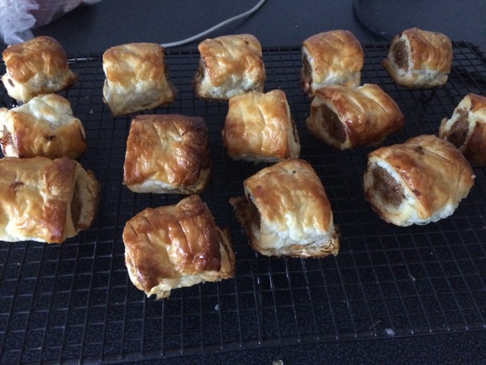 Store bought pastry. Sausages slipped out of the casings ( yeah I know! After all that effort huh??)..