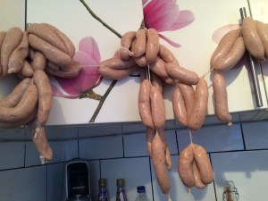 Sausages need to ‘bloom’ for a while. They literally grow. Into their casings..