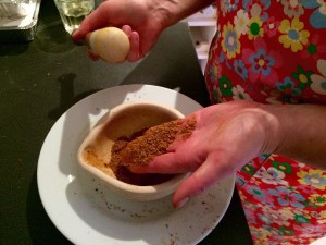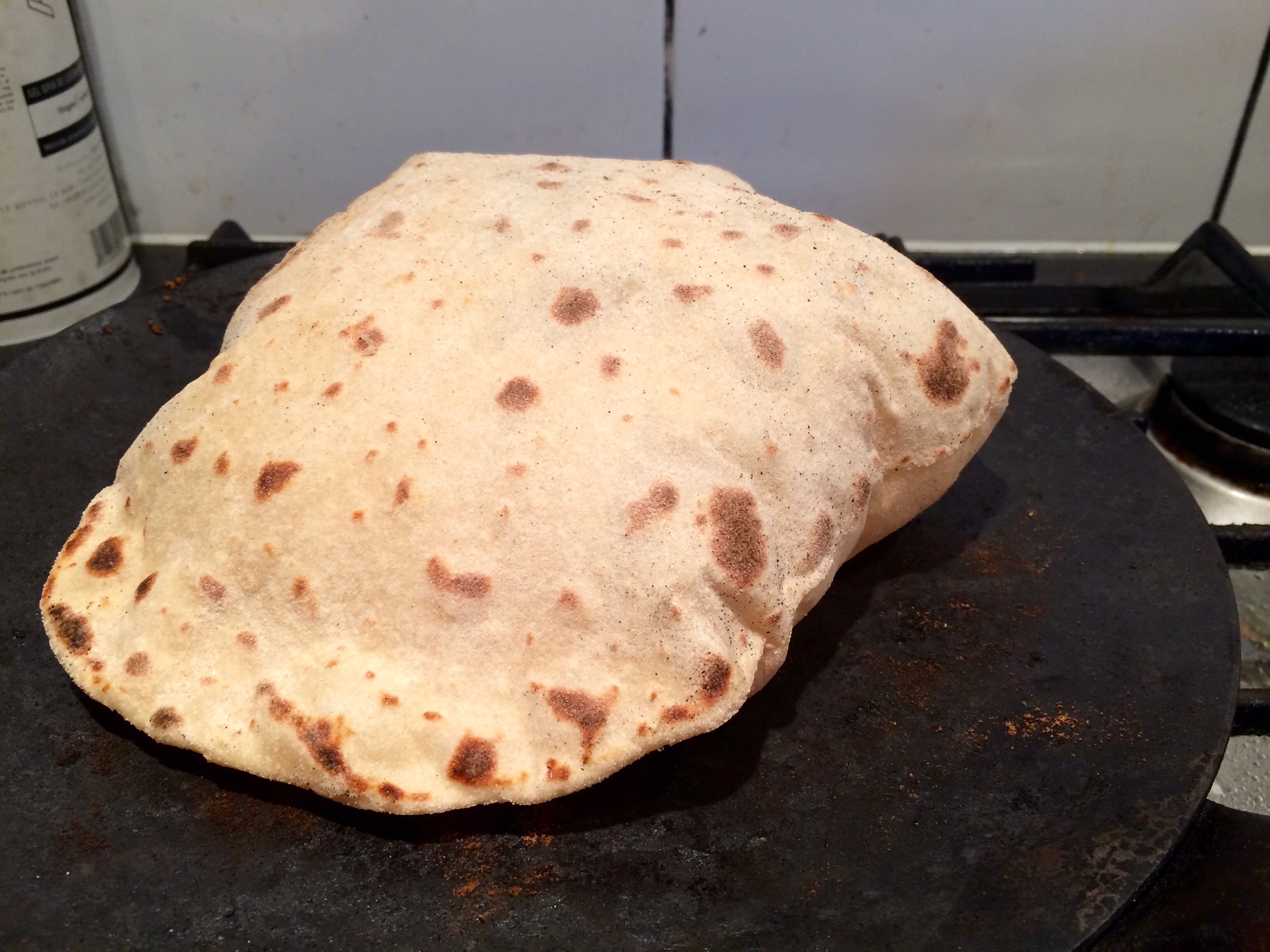 Into balls.. Rolled out onto the hot iron pan..