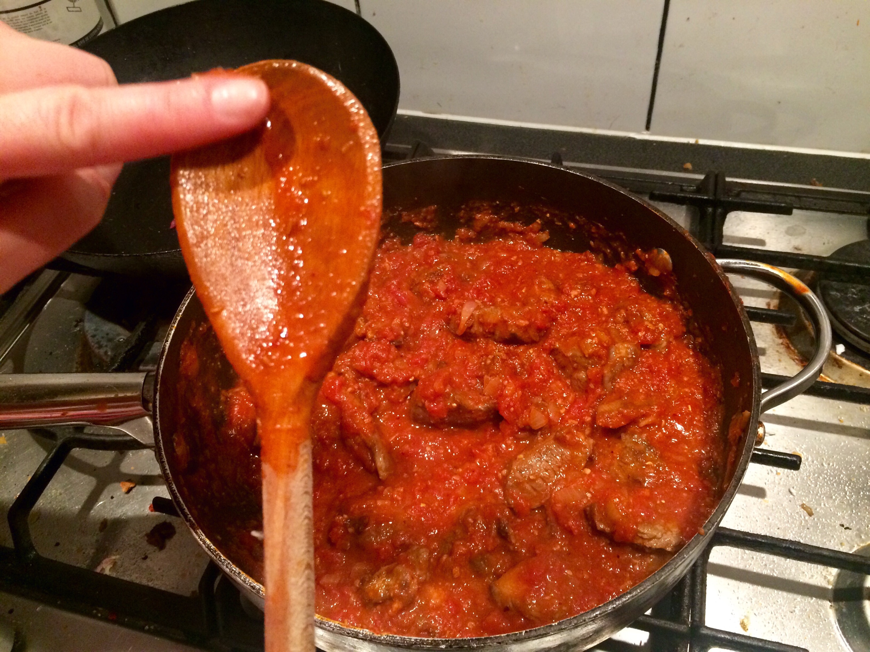 Tomatoes , ginger, garlic and water added.. Cooked till it does what it looks like on the spoon above..