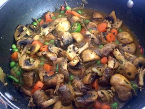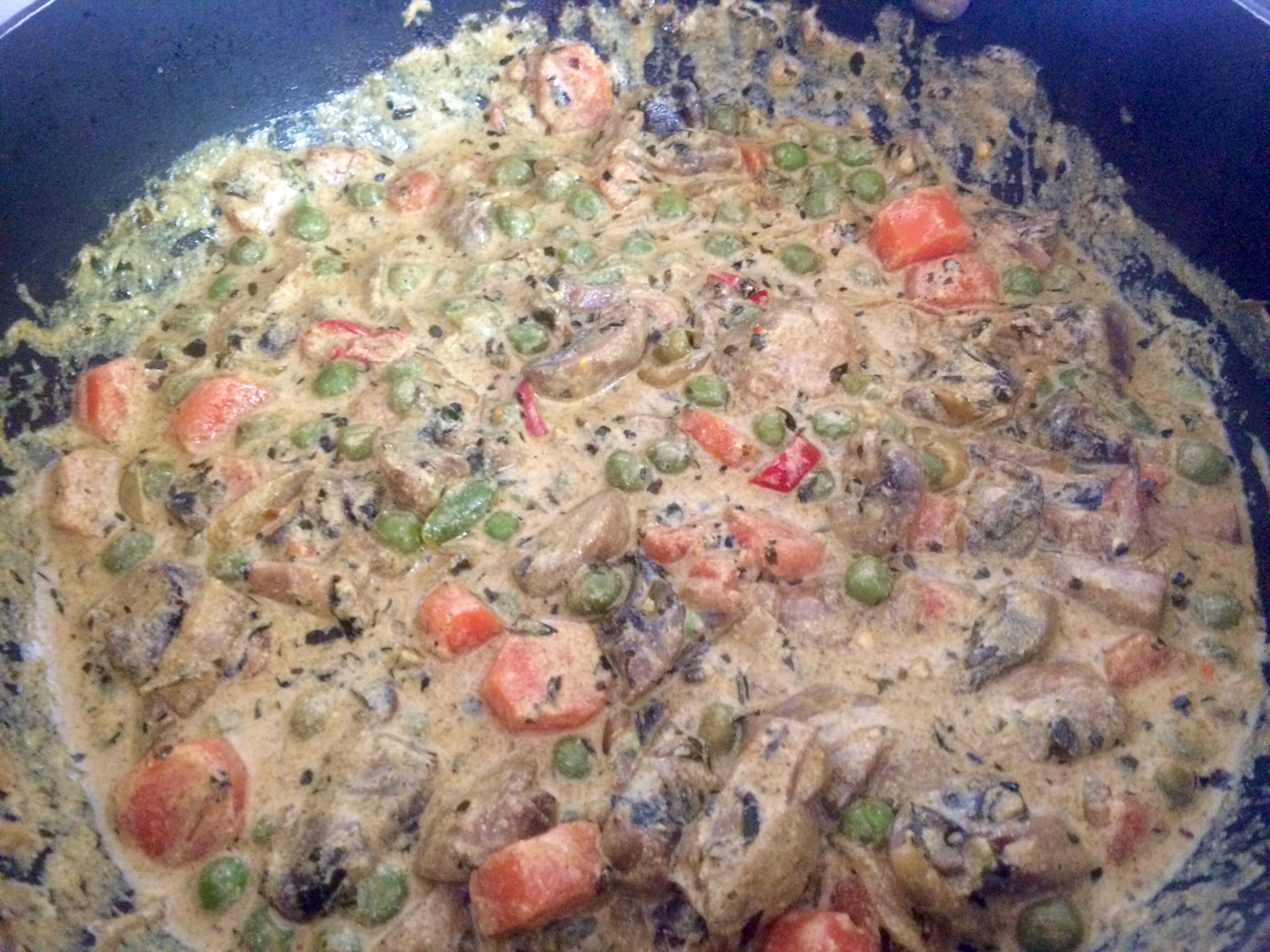 A slap dash veg curry whooped up by me.. Onion garlic ginger carrots peas mushrooms, spices, and Greek yoghurt..
