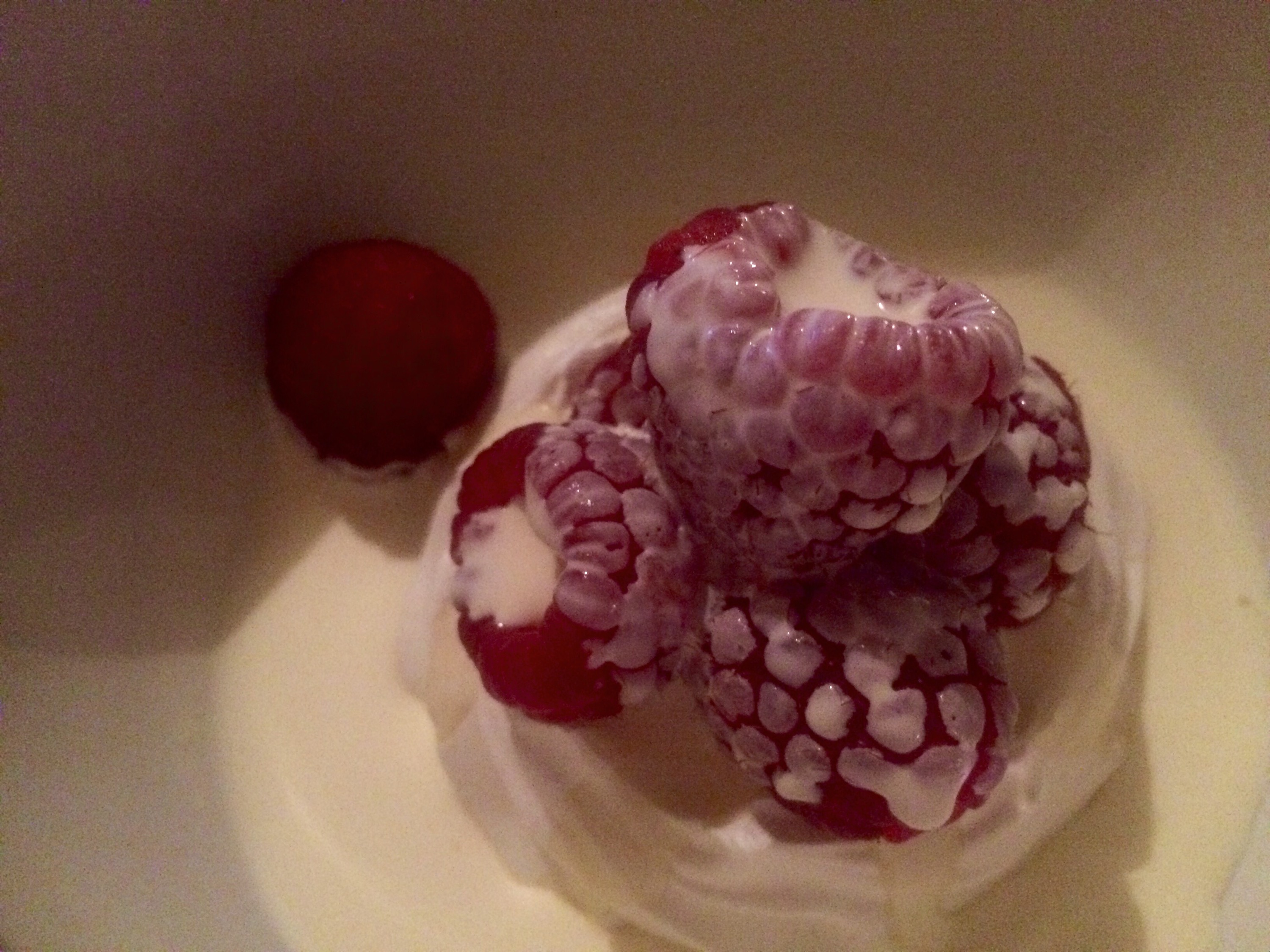 Meringue with raspberry and cream..
