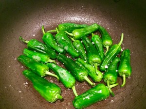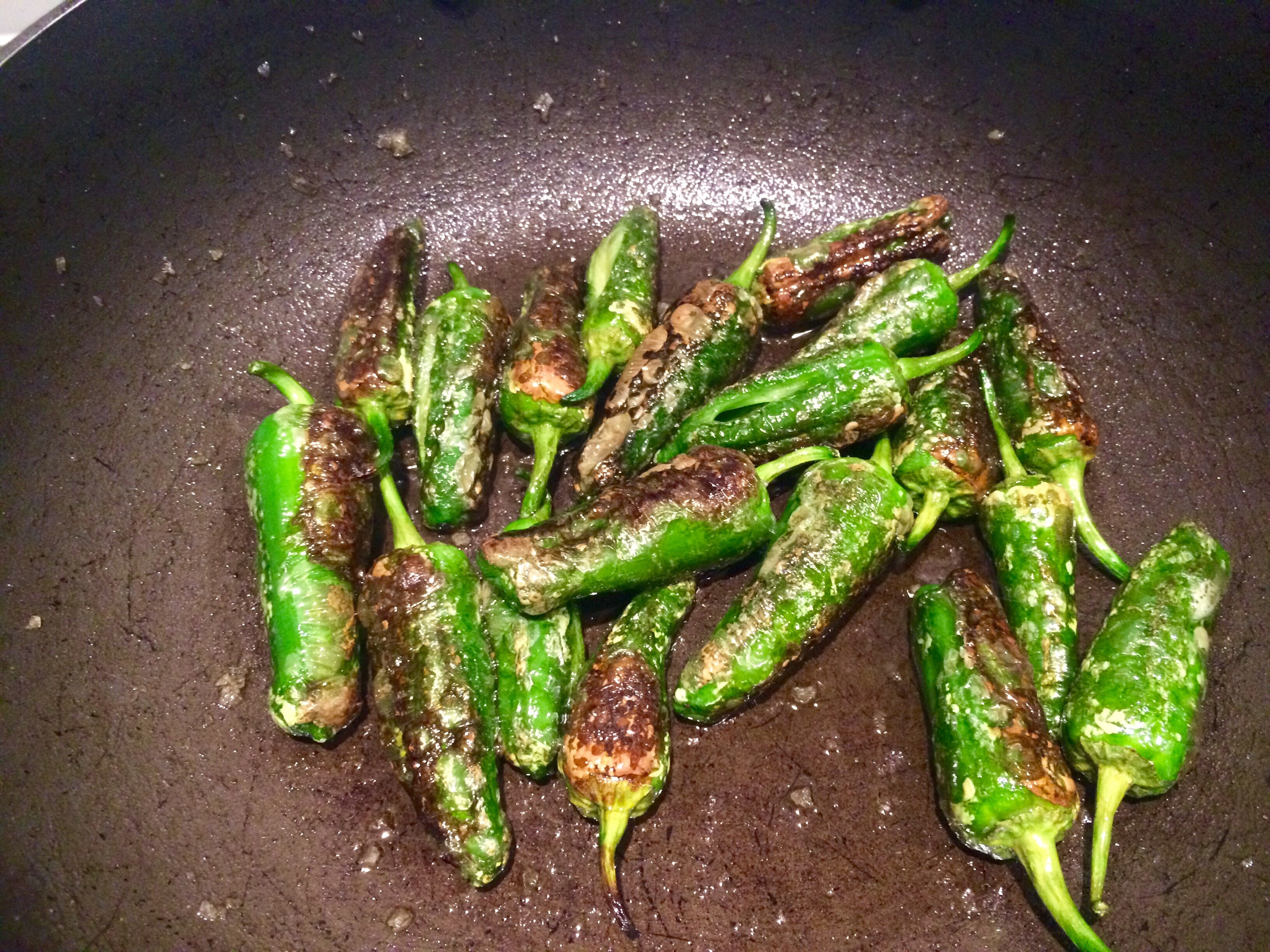 Padron peppers .. Fried off in Spanish olive oil.. Love these!