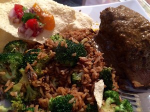 Broccoli in brown rice.. With sesame oil and light Kikkoman soy..