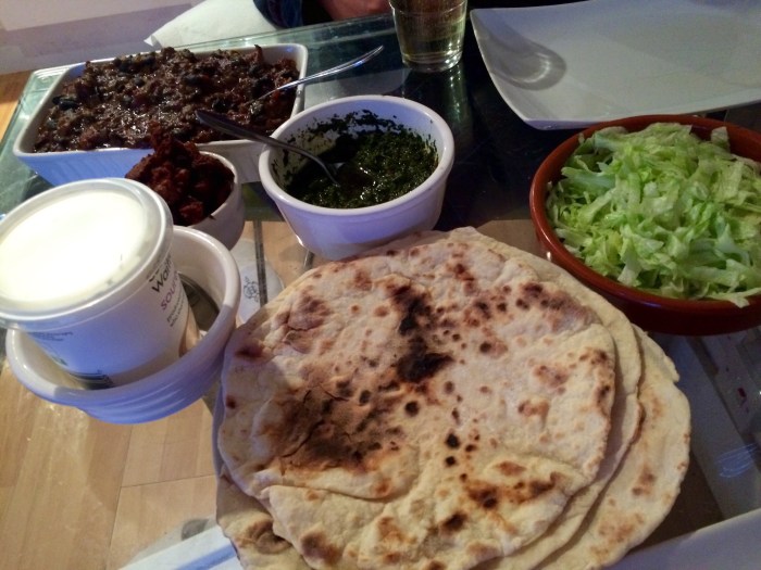 To go with? Lovely soft fresh flatbreads.. ( remember the same weight of yoghurt to plain flour and a pinch of salt).. That’s it!