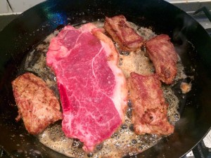 bone in sirloin.. Lamb fillet.. Meets hot fickle fish anchovy butter..(remember that stuff?)..