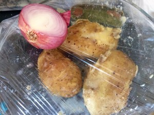 I think one should always have a delicious pre boiled spud to hand.. Excellent for so many things.. ! ( often we don’t have one to hand.. )..