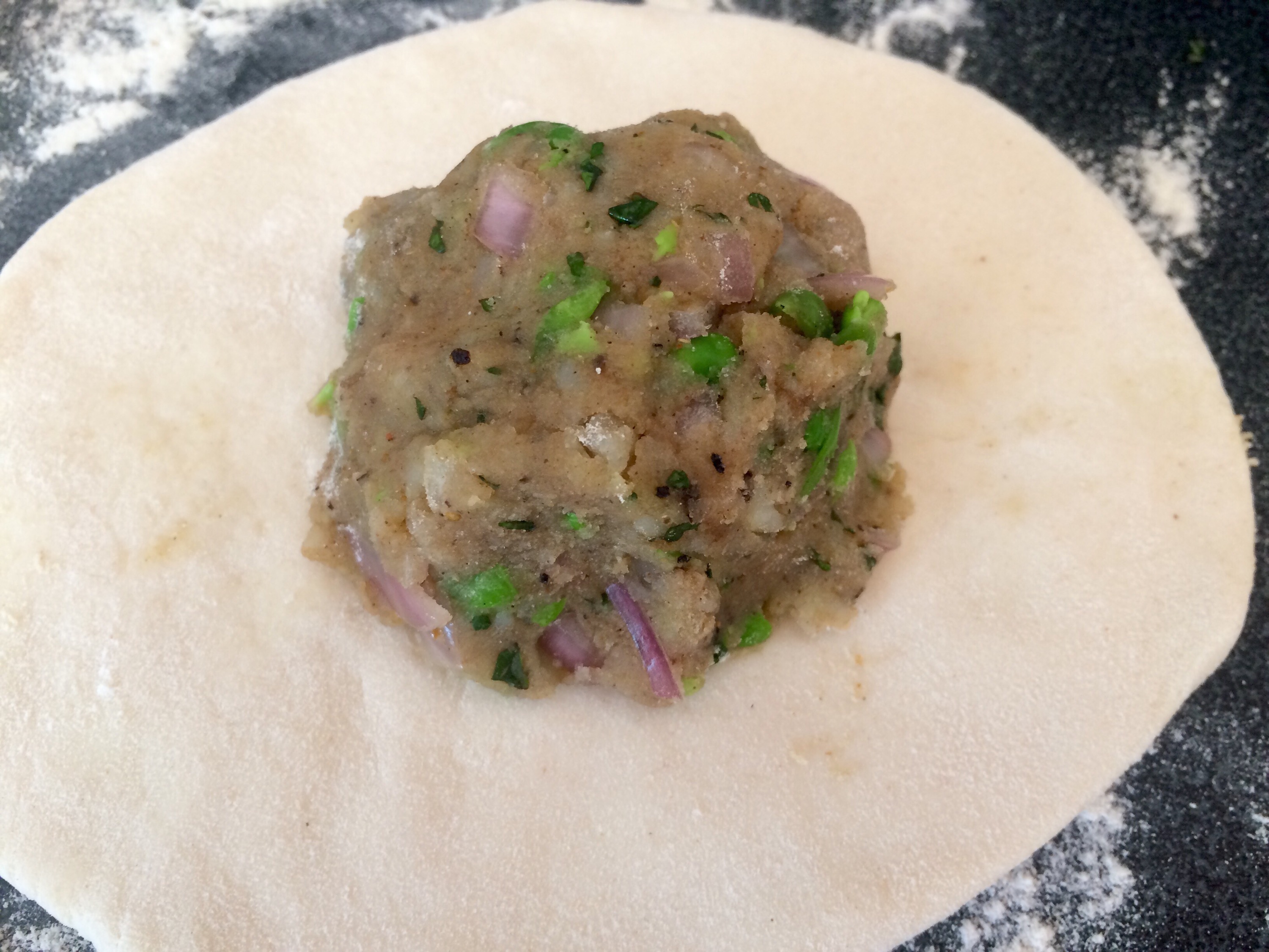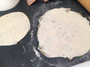 Kinda roll it out.. I use my palm only at this stage.. Till it’s a little thin.. And then pop the mix on top..
