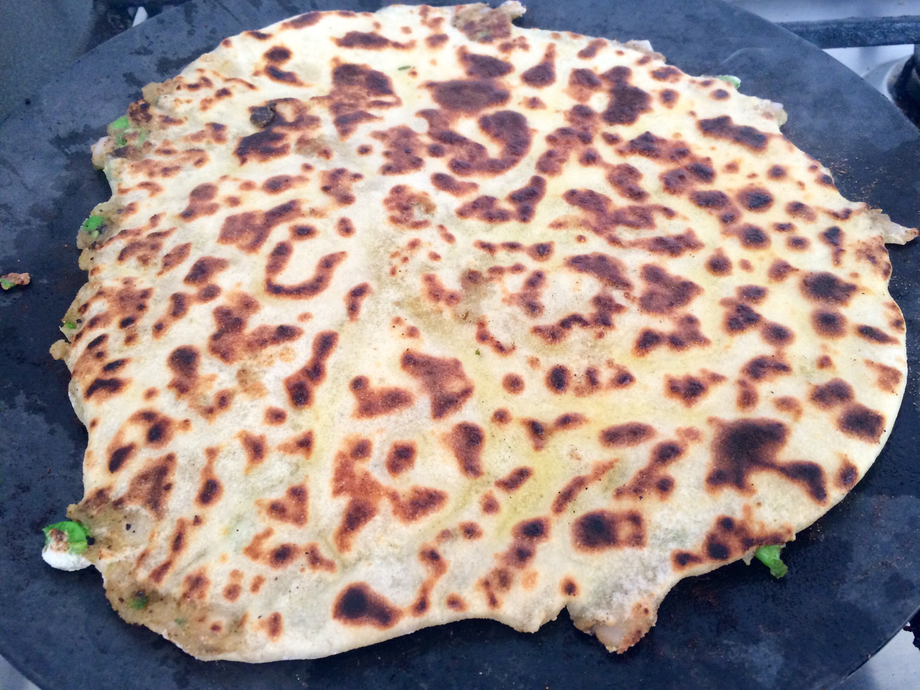 Cooked on the iron flat plate.. Spooning a little of Mrs middle tons pimped roscoff garlic oil on top for extra crispyness..