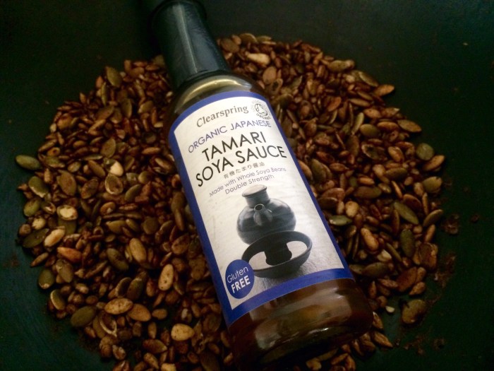 Haha, oh dear I would run out of soya sauce if I put the whole bottle in every time…I guess I’ll have to restrain myself 🙂 This sounds like such a delicious snack, all toasty and a bit salty and spicy.