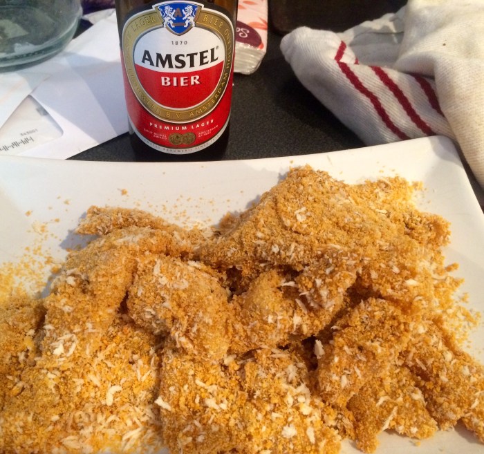 When I was a kid, sometimes me and Father would make plaice and chips.. I used to love coating the fish in the egg wash and the bright orange crumbs.. The crumbs have to be those bright orange ones.. Yet now I use a mix of Panko and the orange crumbs..