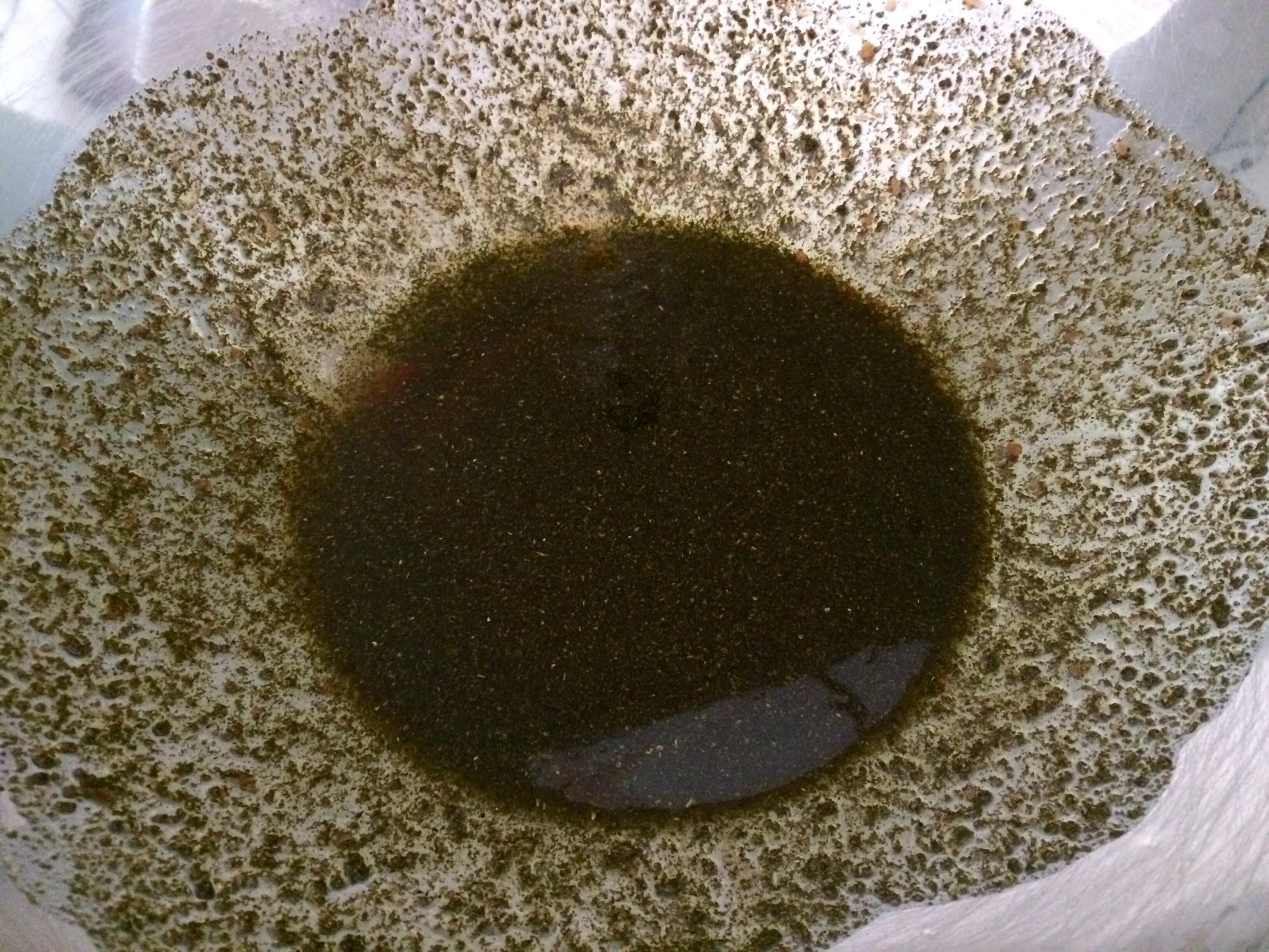 A mix of balsamic vinegar , olive oil arabic salad seasoning and parsley..