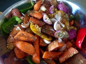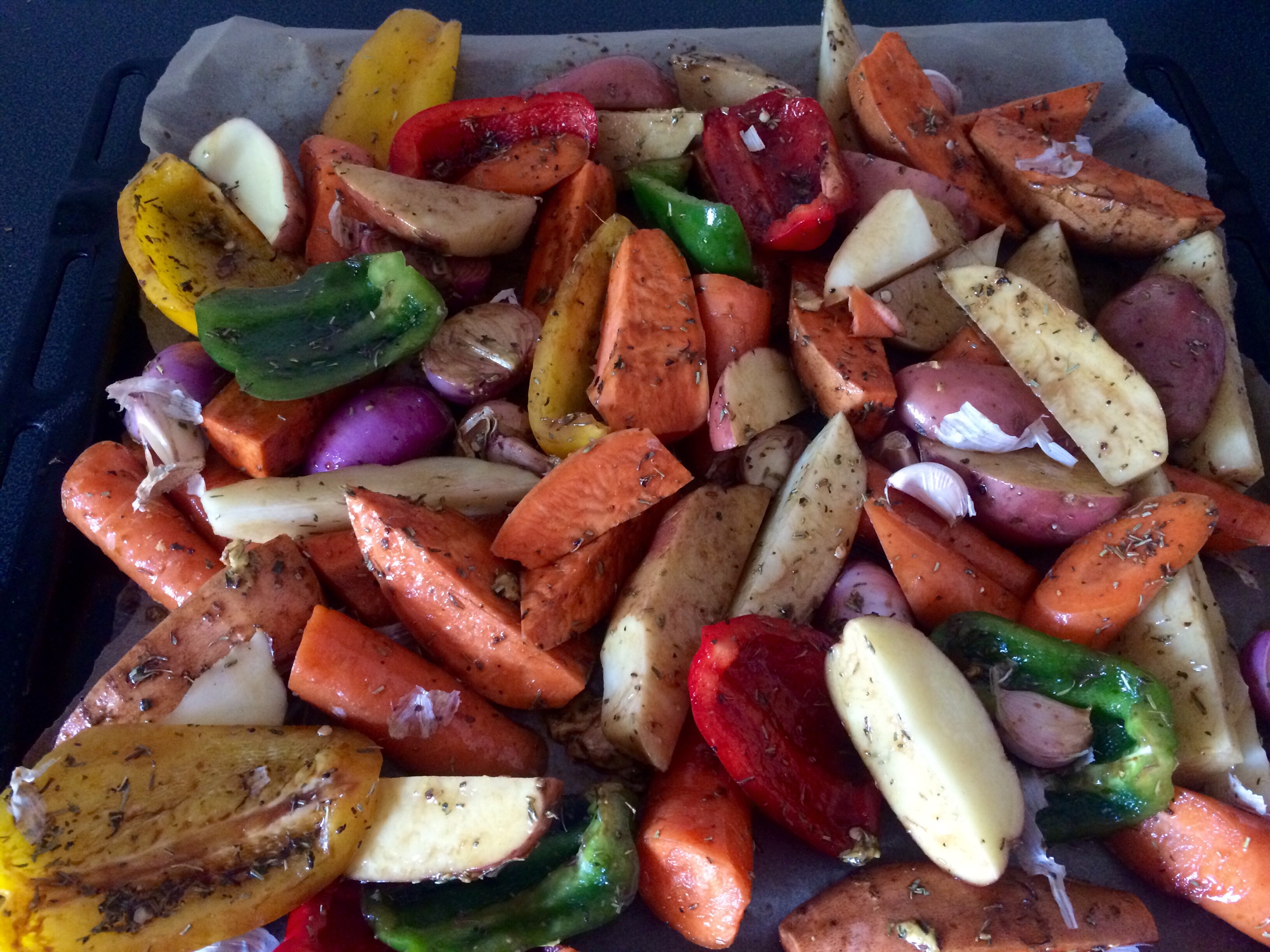 With use up vegetables too.. Sweet potatoes , red potatoes , king Edwards, carrots, peppers , French garlic and Indian pink onions..
