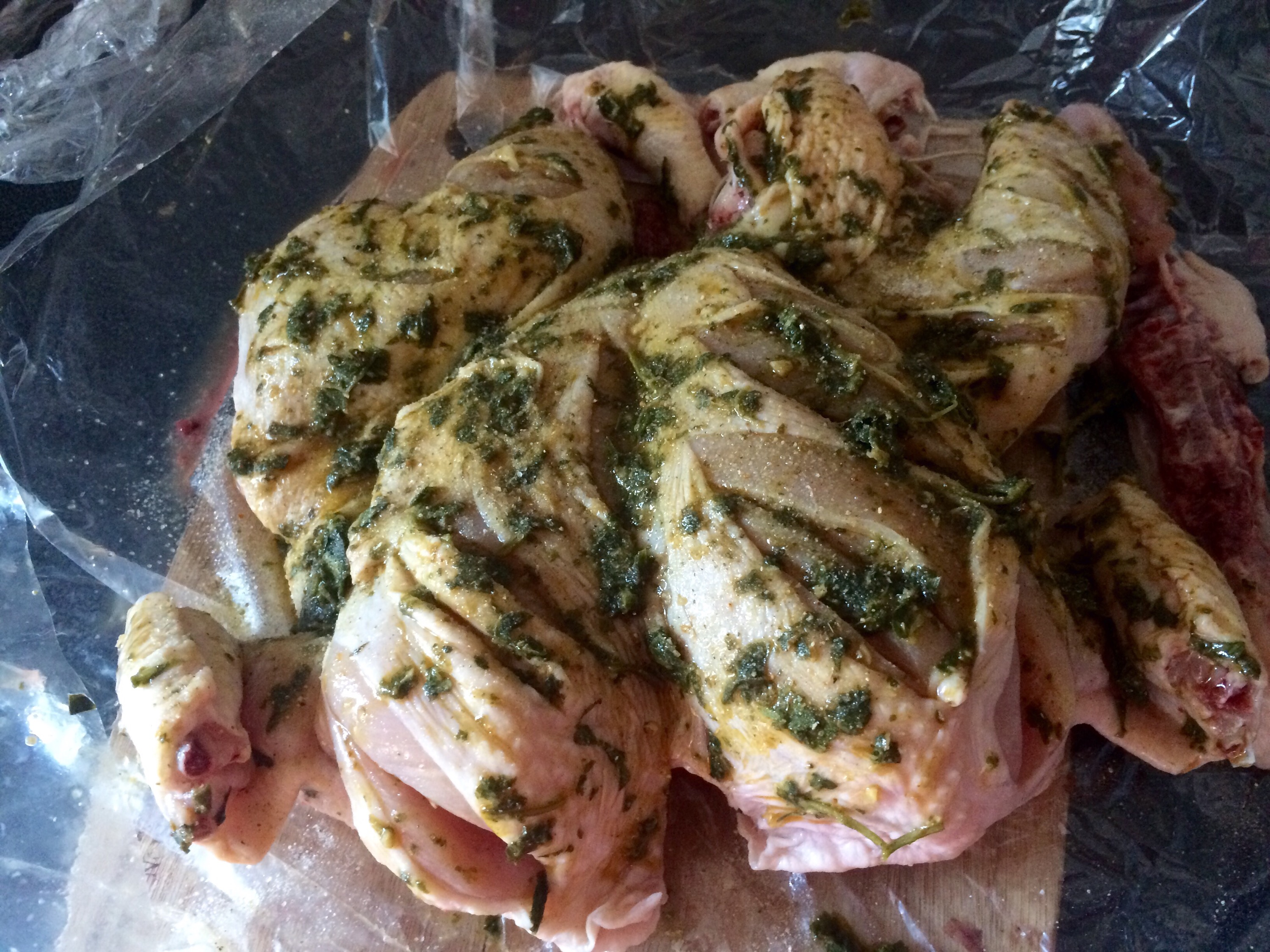 Roasted with a chimichurri spatchcock chicken on the bars above..
