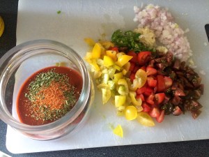 That’s pink onions.. Garlic.. Herbs, smuggled Mexican chilli and lime powder. And valantina sauce..
