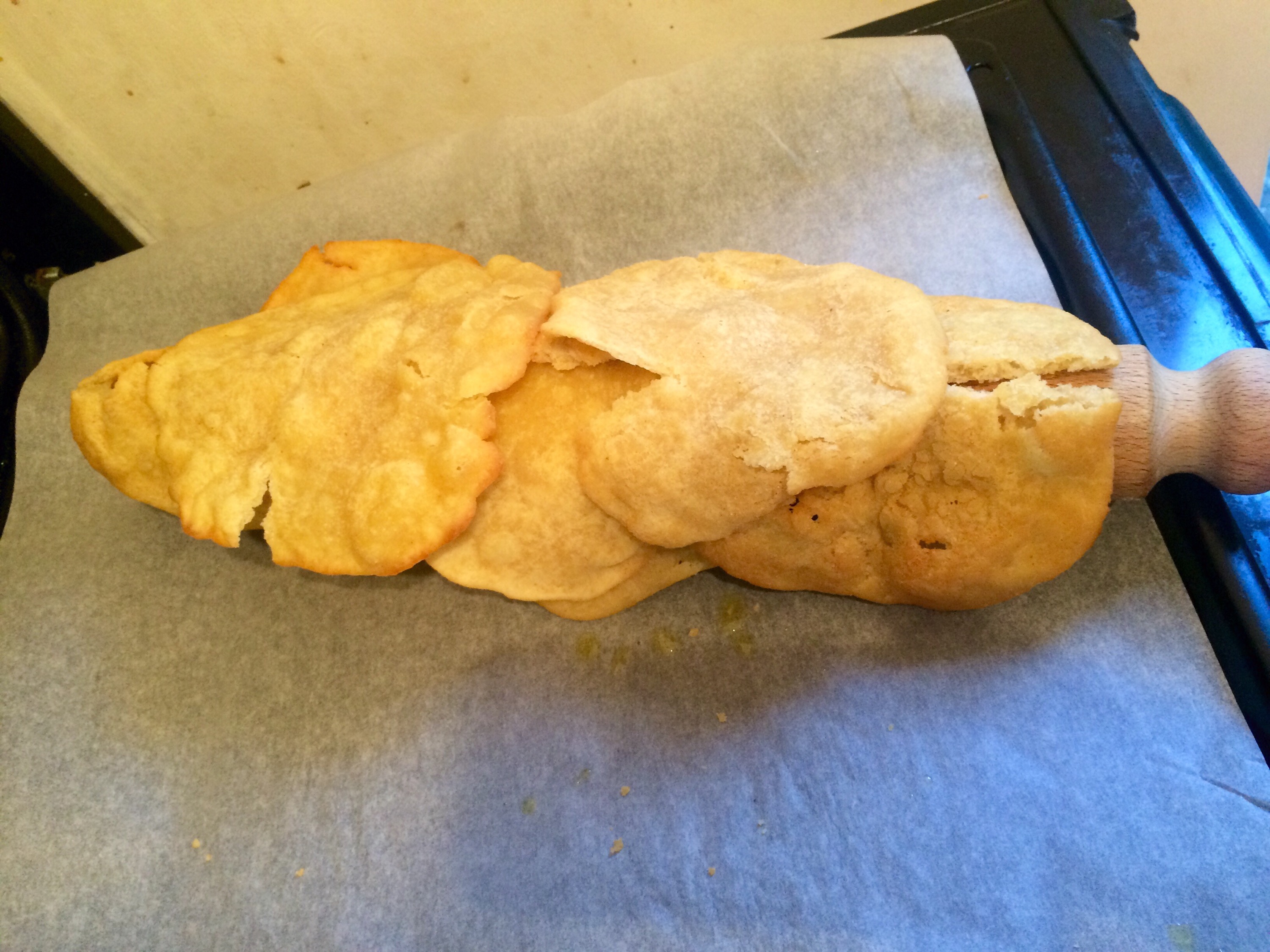 An attempt to get them to fold over .. By putting them hot into a rolling pin..