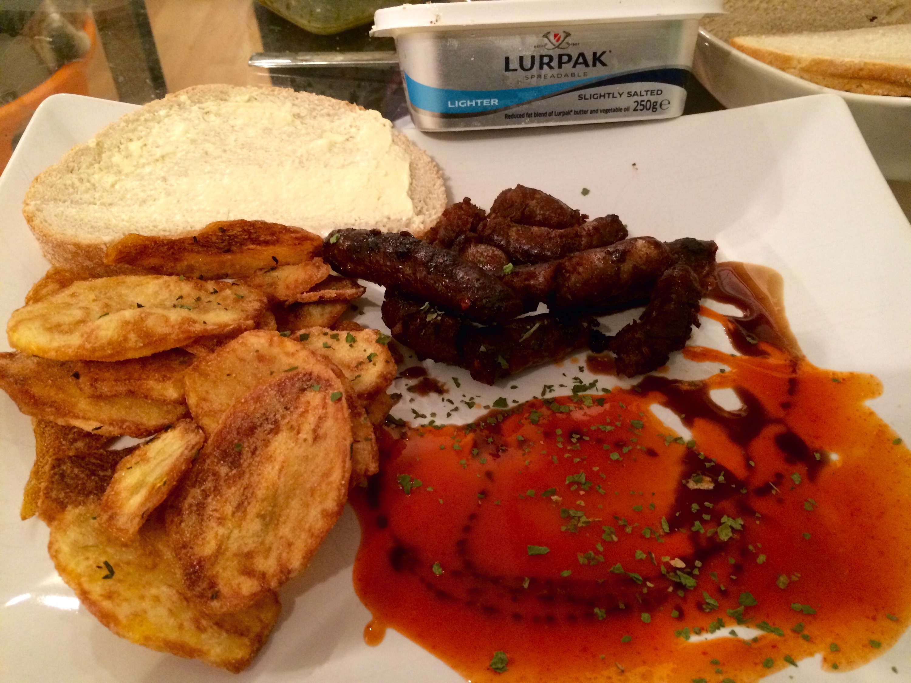 Super dooper chips though!!! Drain on brown paper.. It for some reason stops things going soggy.. More science right there!