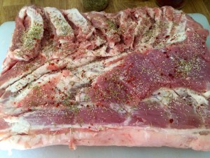 Boned and seasoned meat side..