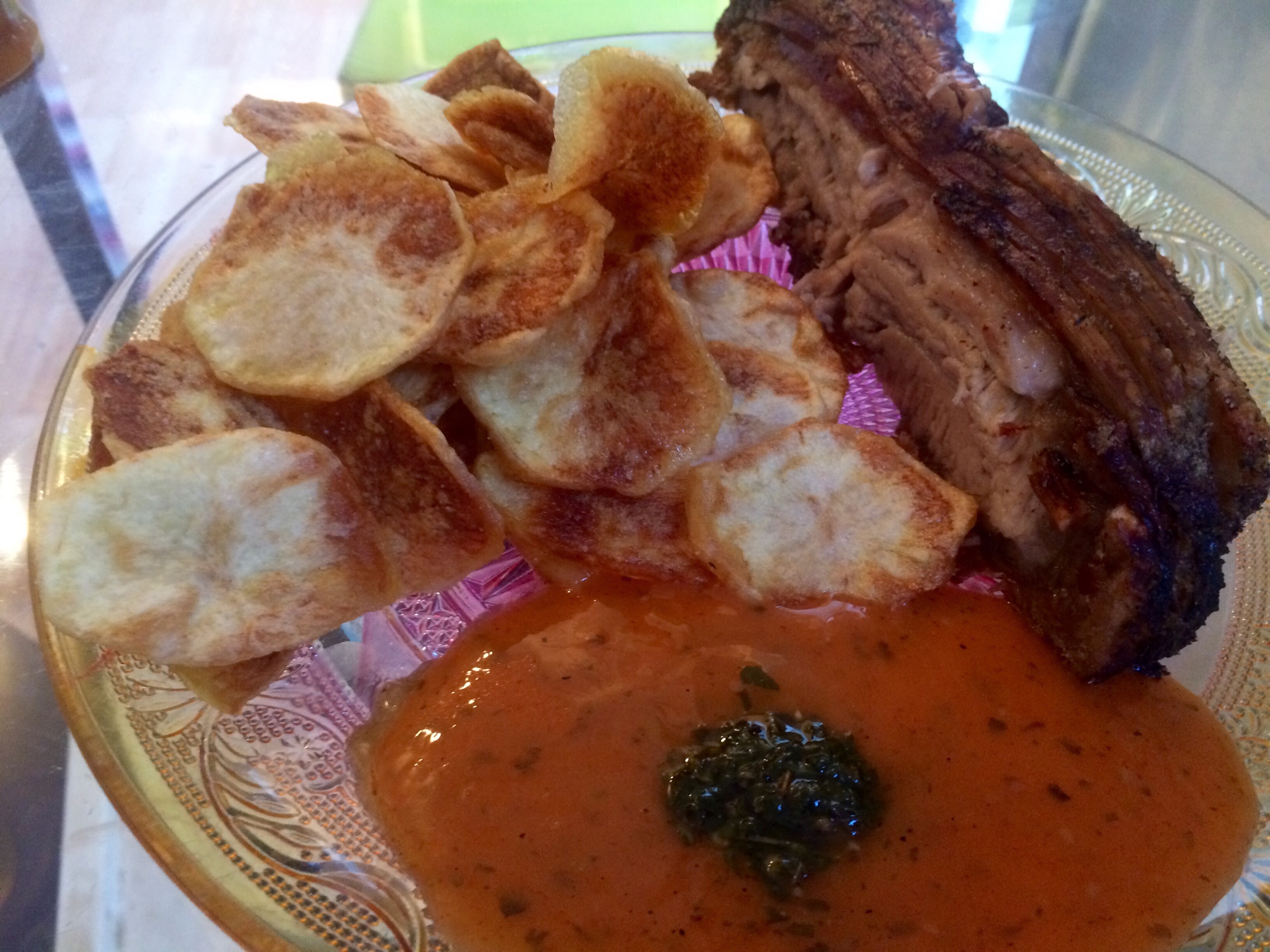 Veggies? Nah.. Just hot sauce and the drop of chimichurri..