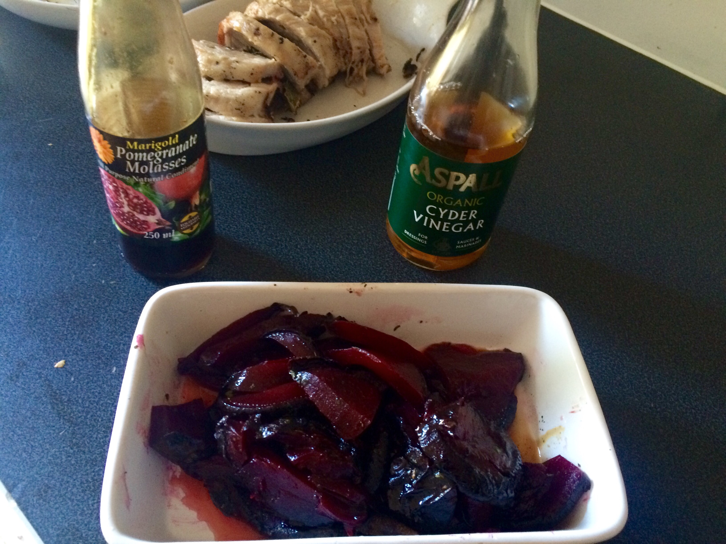 Greats Sunday lunch! With good leftovers.. The beetroot already in pomegranate molasses and cider vinegar..