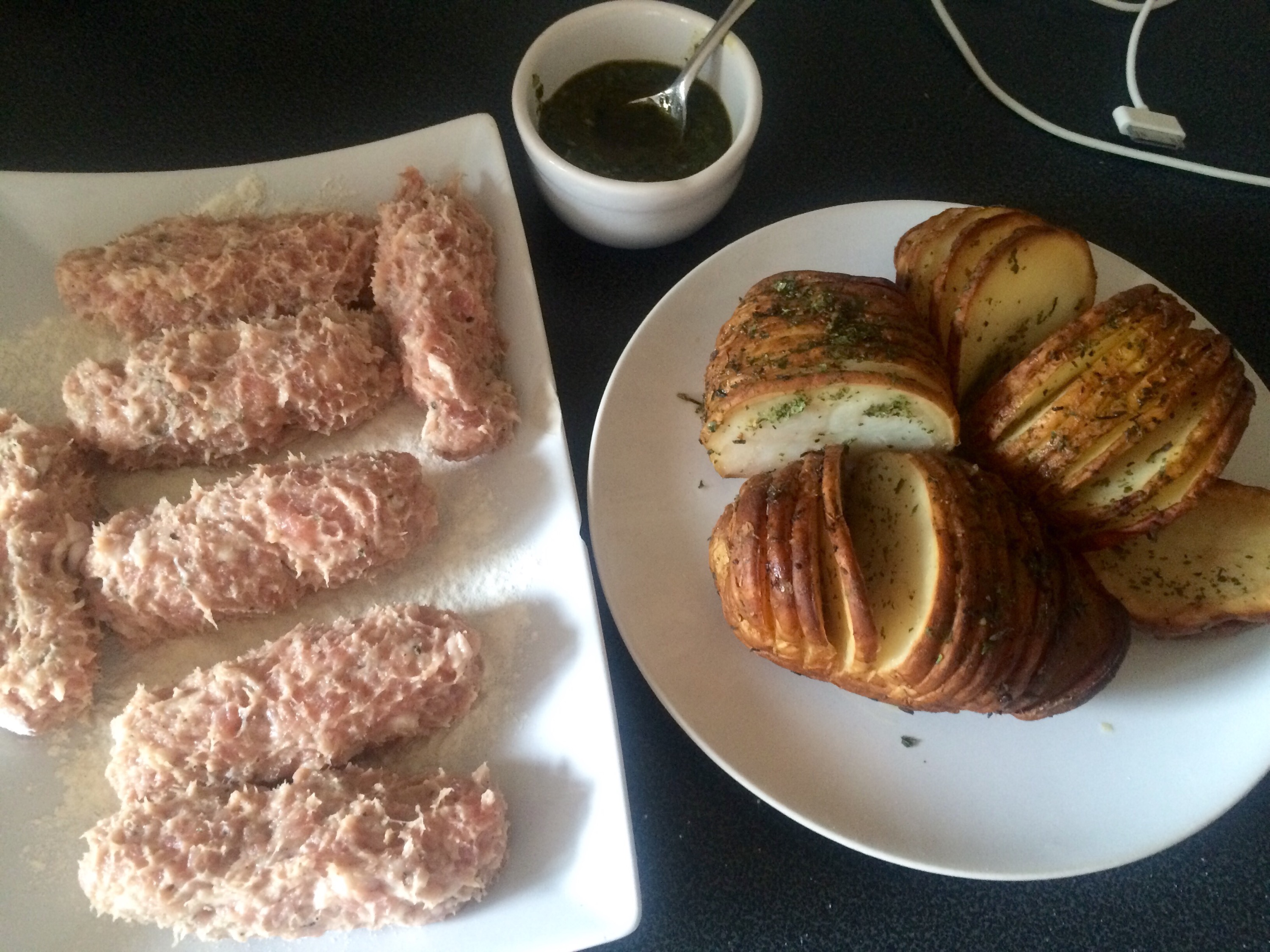 The sausage meat that we had was pimped up with nutmeg, dried coriander, Bristol blend pepper and dried sage.. No skins just rolled in a mix of semolina and self raising flour.. Fried off ..