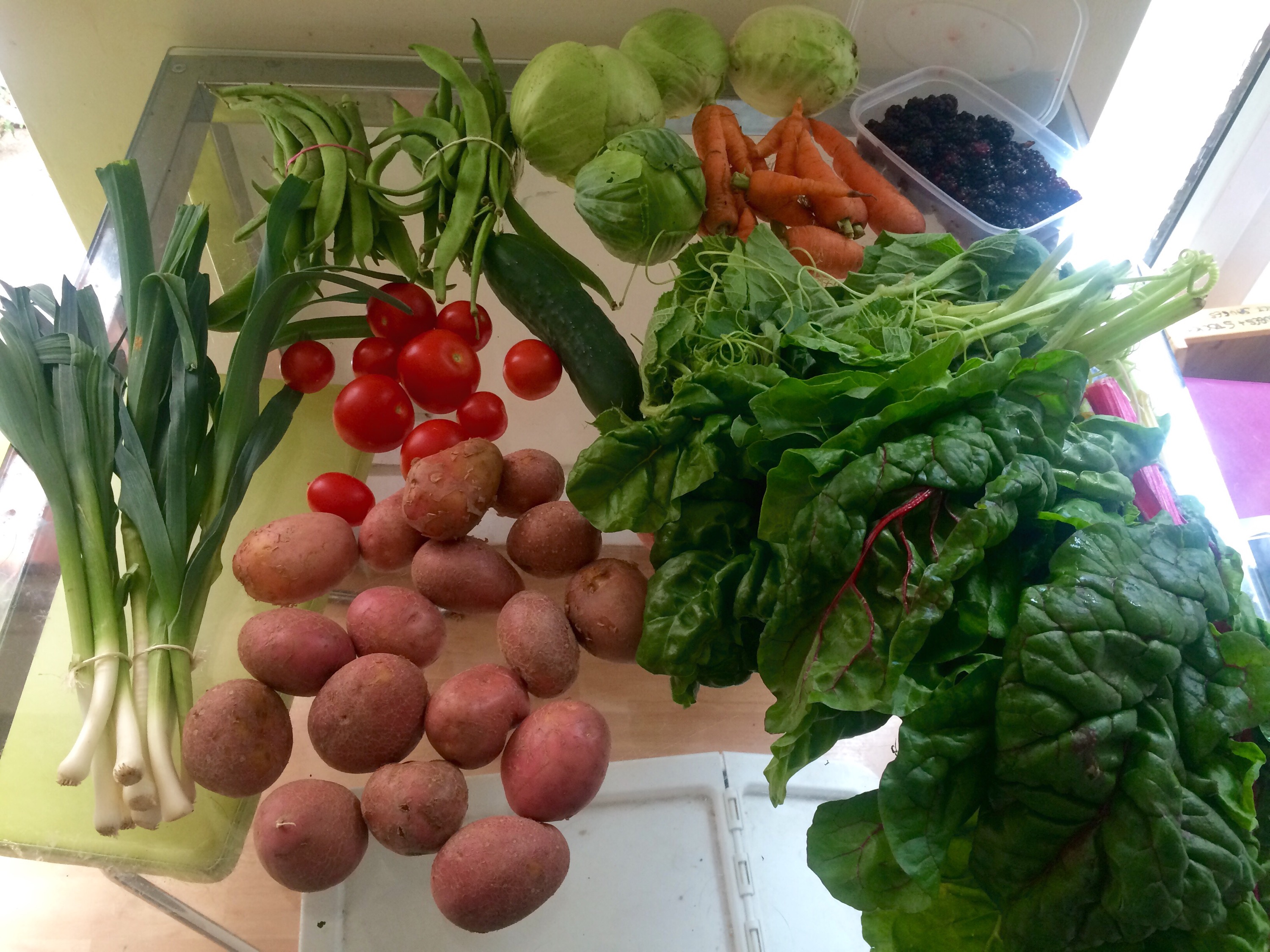Ok.. So no picture of the church.. Forgot.  Yet my Sicilian pal Vince takes along stuff from his allotment and for a donation you can get bags of stuff.  Whatever is ready really.. I really must go more often..