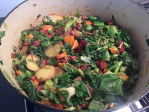 Starting with the potatoes, carrots and ham.. Then adding the rest..