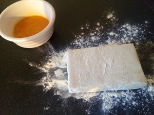 Take the store bought puff pastry.. Remember this is quick so no need to make a rough puff or anything.. And whoop up a white egg for the glaze..