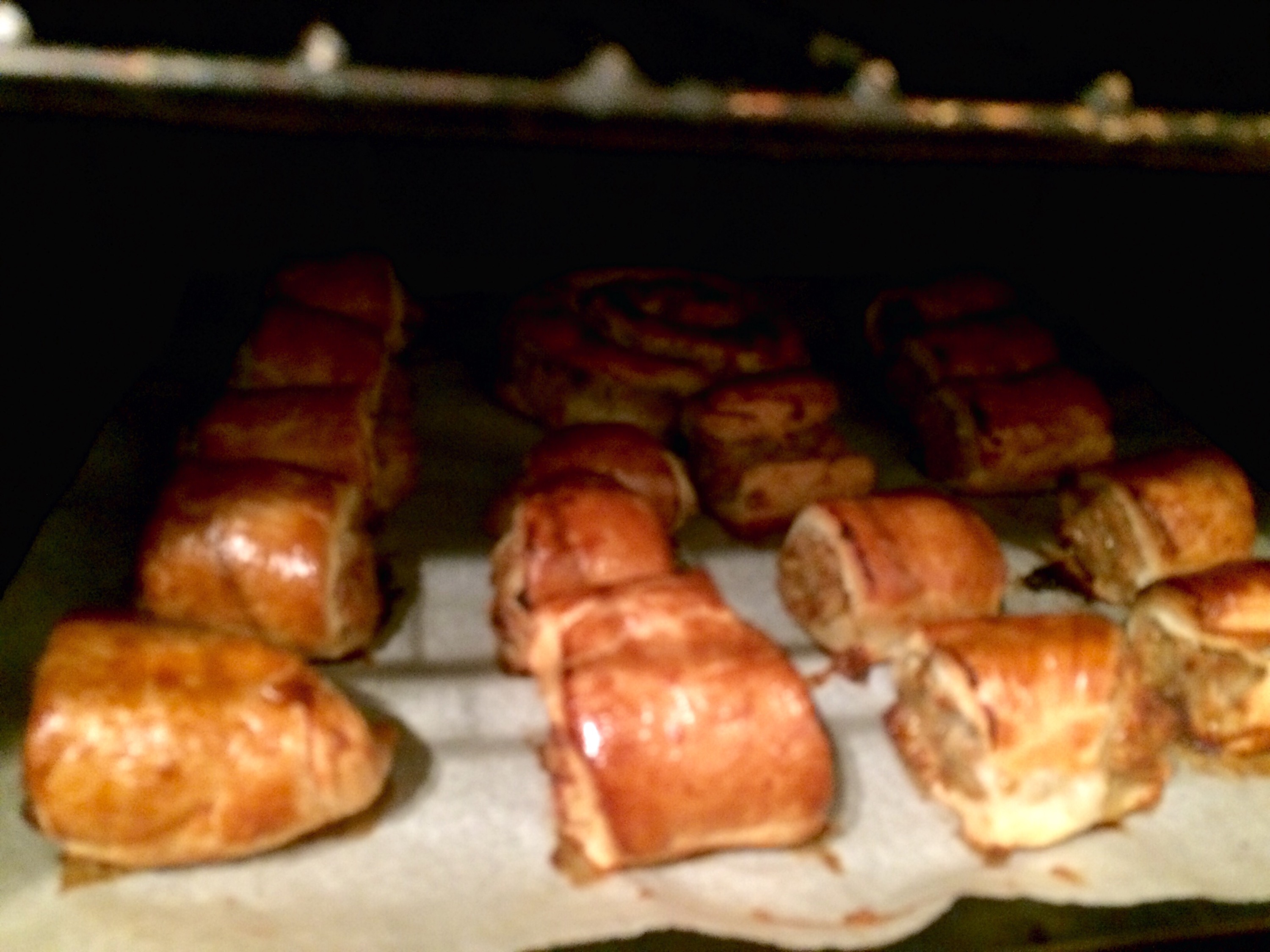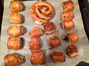 And snaffle up the sausage rolls… Pocketing done for a mid morning snackerooni..