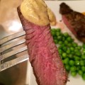 Mustard oil and Maldon salt Sirloin steak,buttered peas, and Piri Piri fries