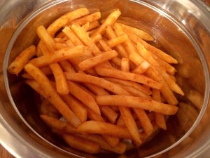Peru Peru seasoned frenched fries fried off in Uncle Bens wok..